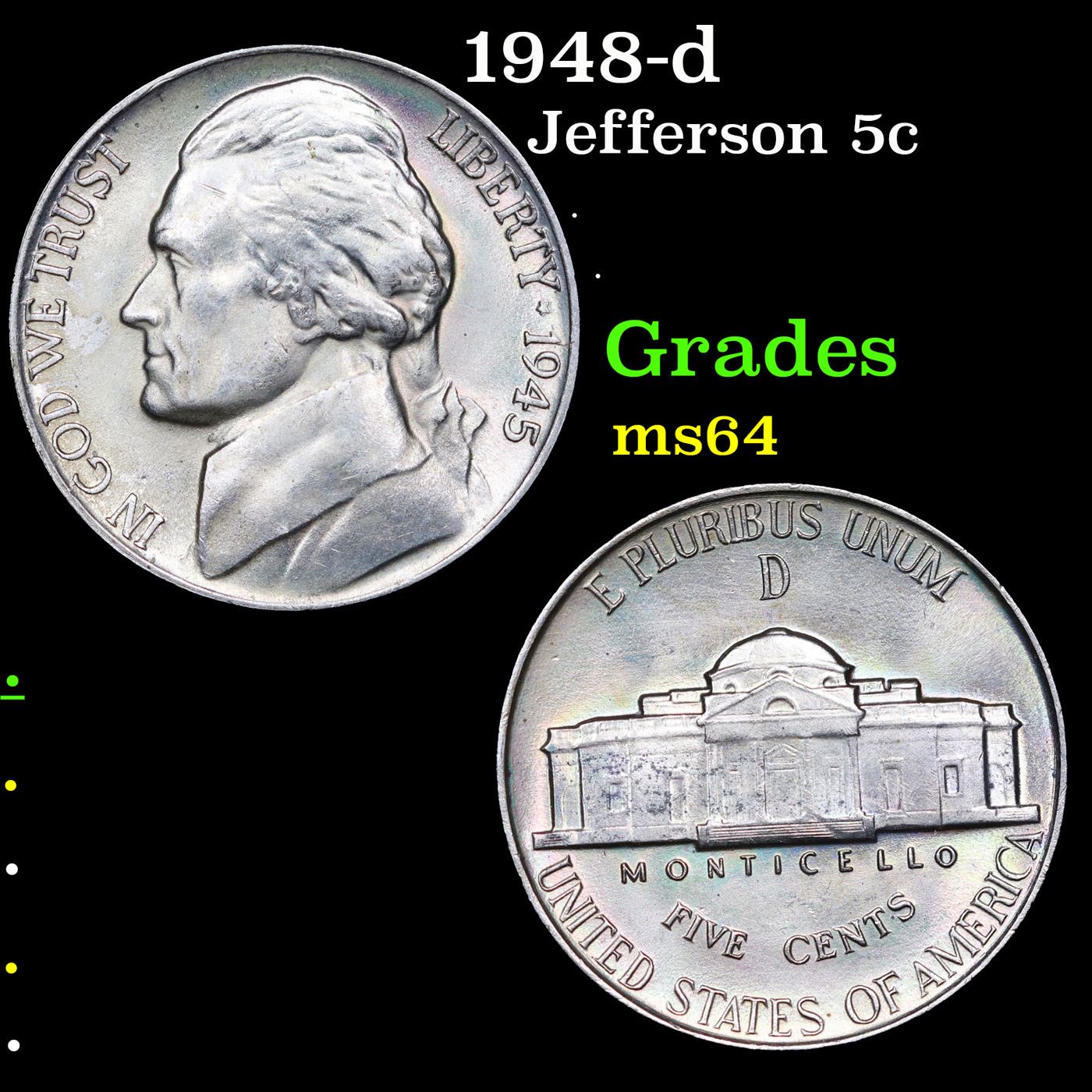 1945-d Jefferson Nickel 5c Grades Choice Unc.