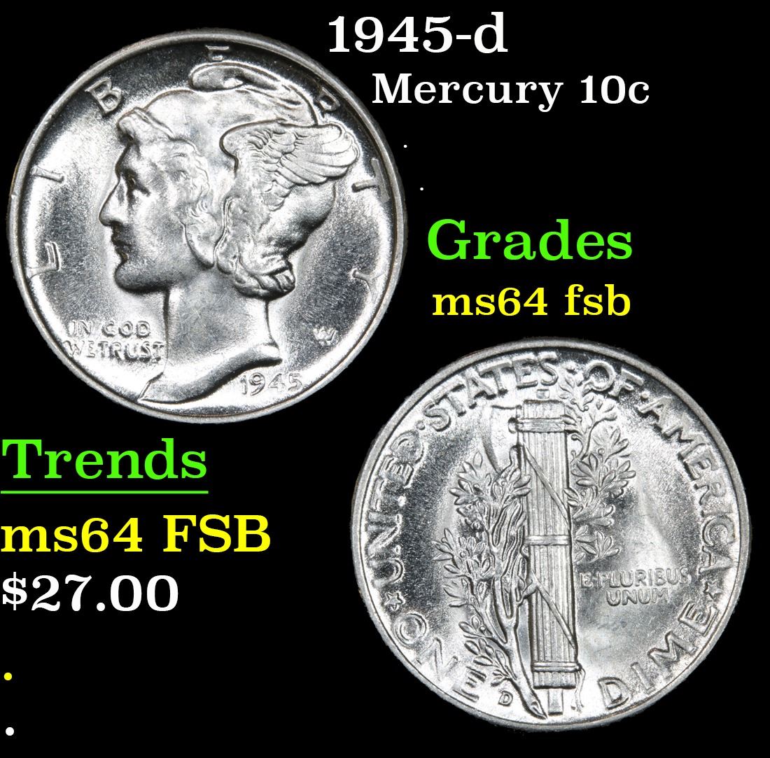 1945-d Mercury Dime 10c Grades Choice Unc FSB.