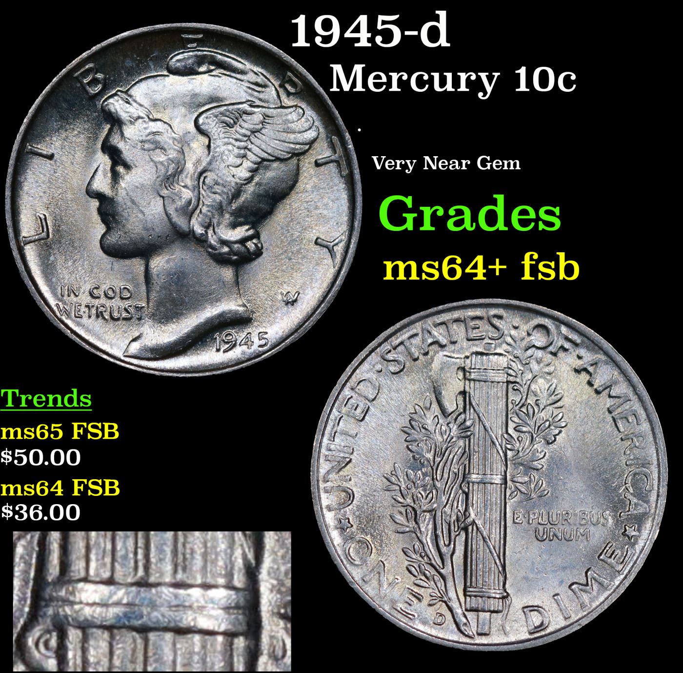 1945-d Mercury Dime 10c Grades Choice Unc+ FSB.