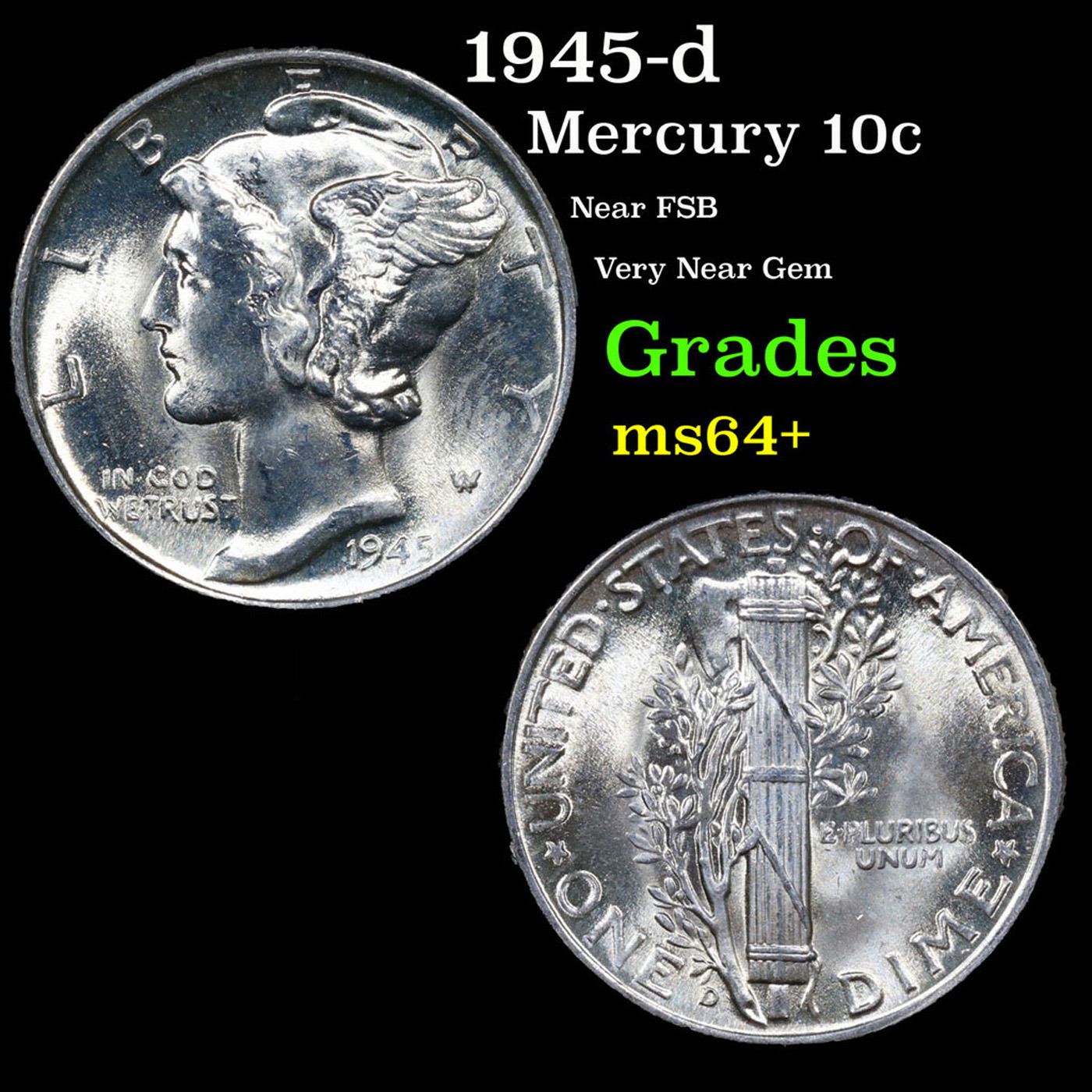 1945-d Mercury Dime 10c Grades Choice+ Unc.
