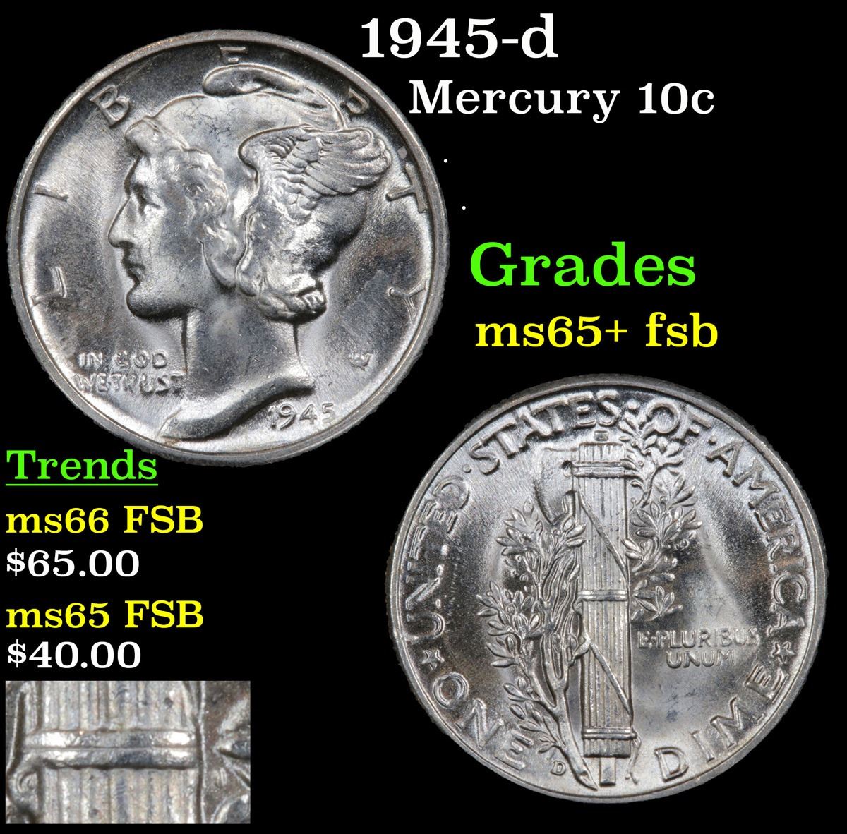 1945-d Mercury Dime 10c Grades GEM+ FSB.