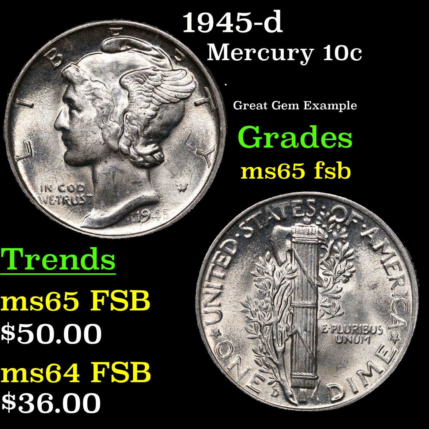 1945-d Mercury Dime 10c Grades GEM FSB.
