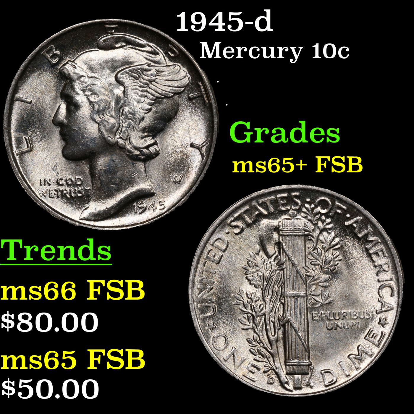 1945-d Mercury Dime 10c Grades GEM+ FSB.