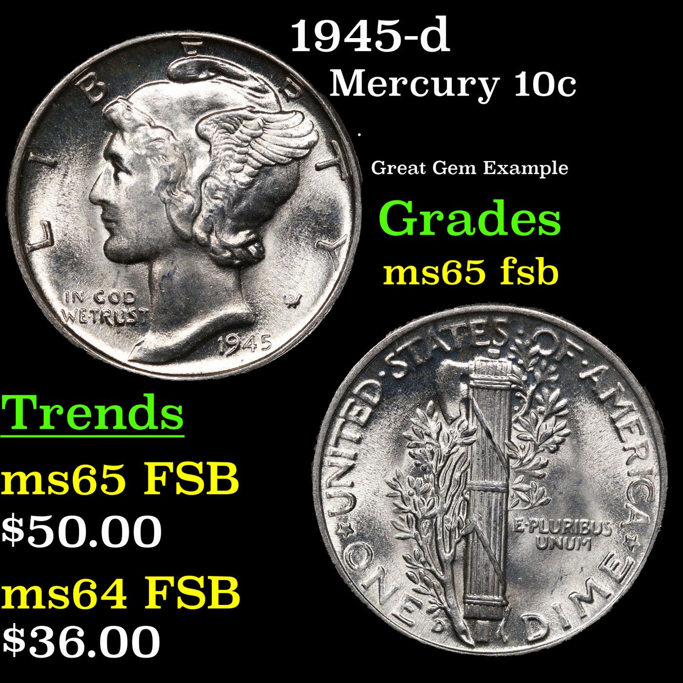 1945-d Mercury Dime 10c Grades GEM FSB.