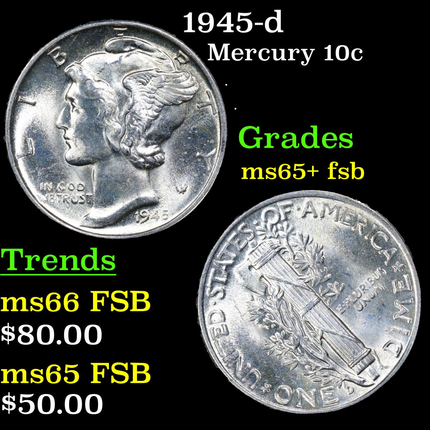 1945-d Mercury Dime 10c Grades GEM+ FSB.