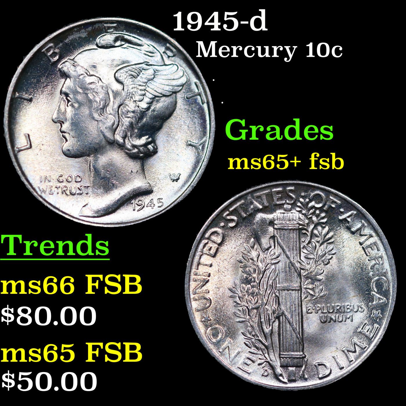 1945-d Mercury Dime 10c Grades GEM+ FSB.