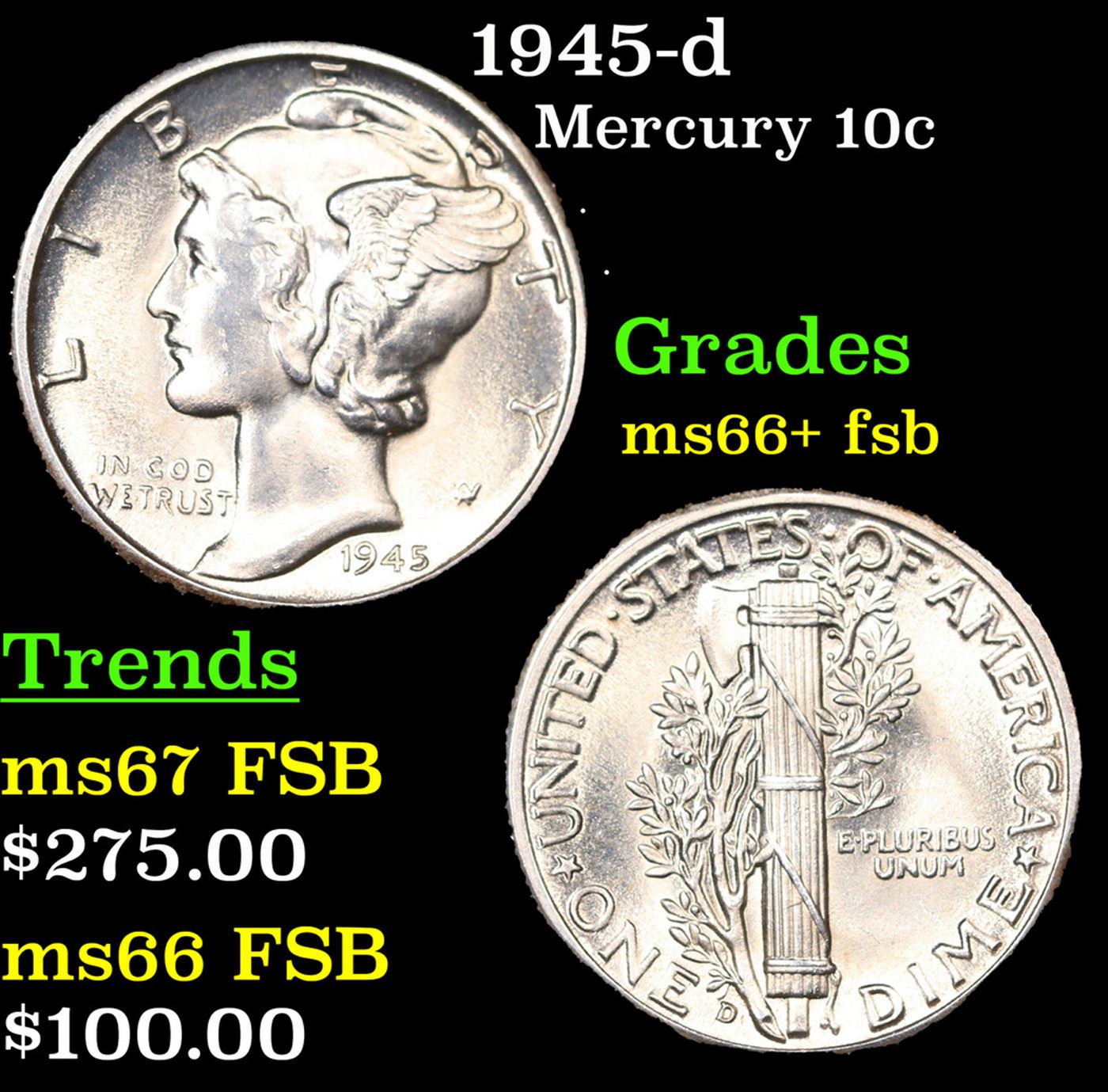 1945-d Mercury Dime 10c Grades GEM++ FSB.