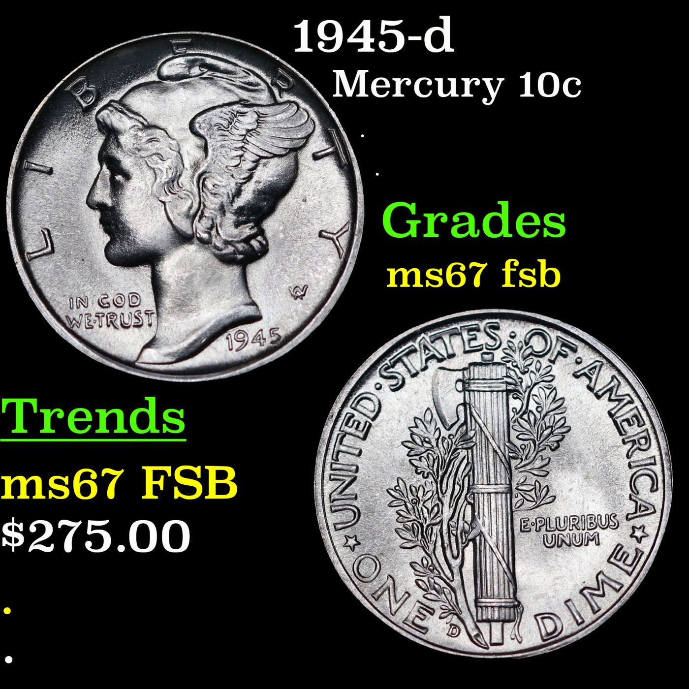 1945-d Mercury Dime 10c Grades GEM++ FSB.