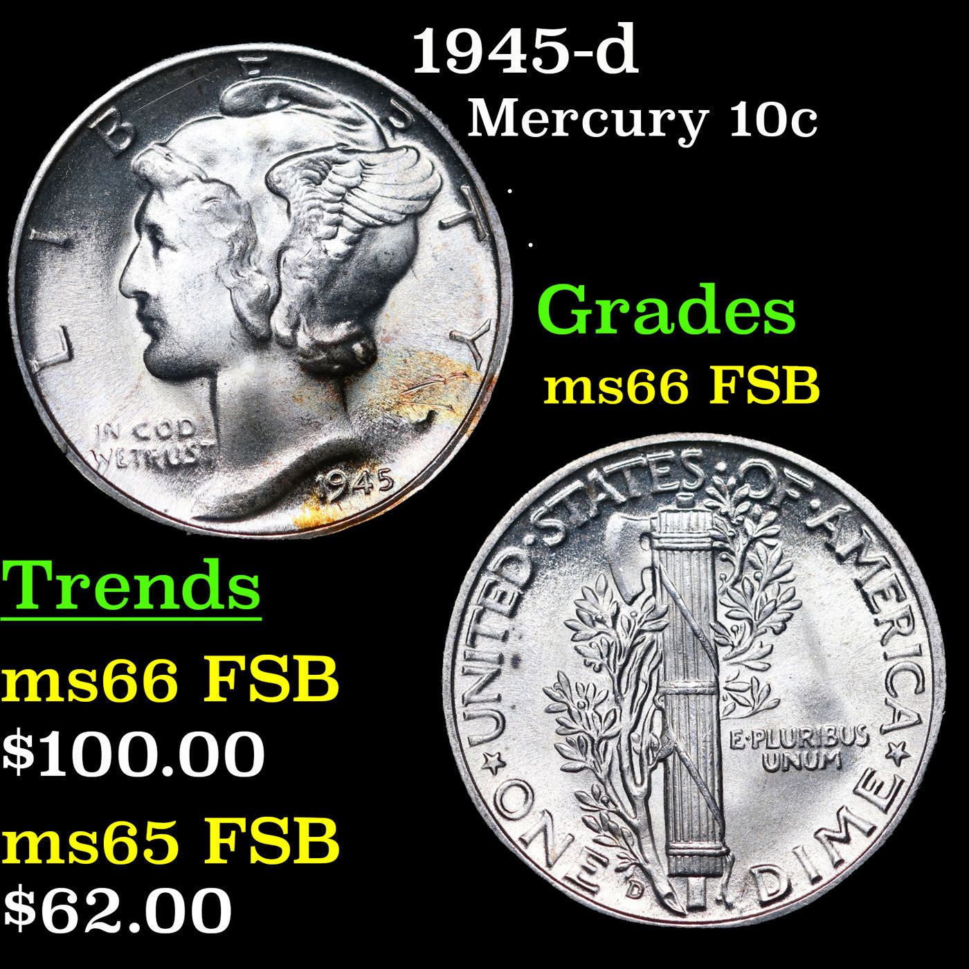 1945-d Mercury Dime 10c Grades GEM+ FSB.