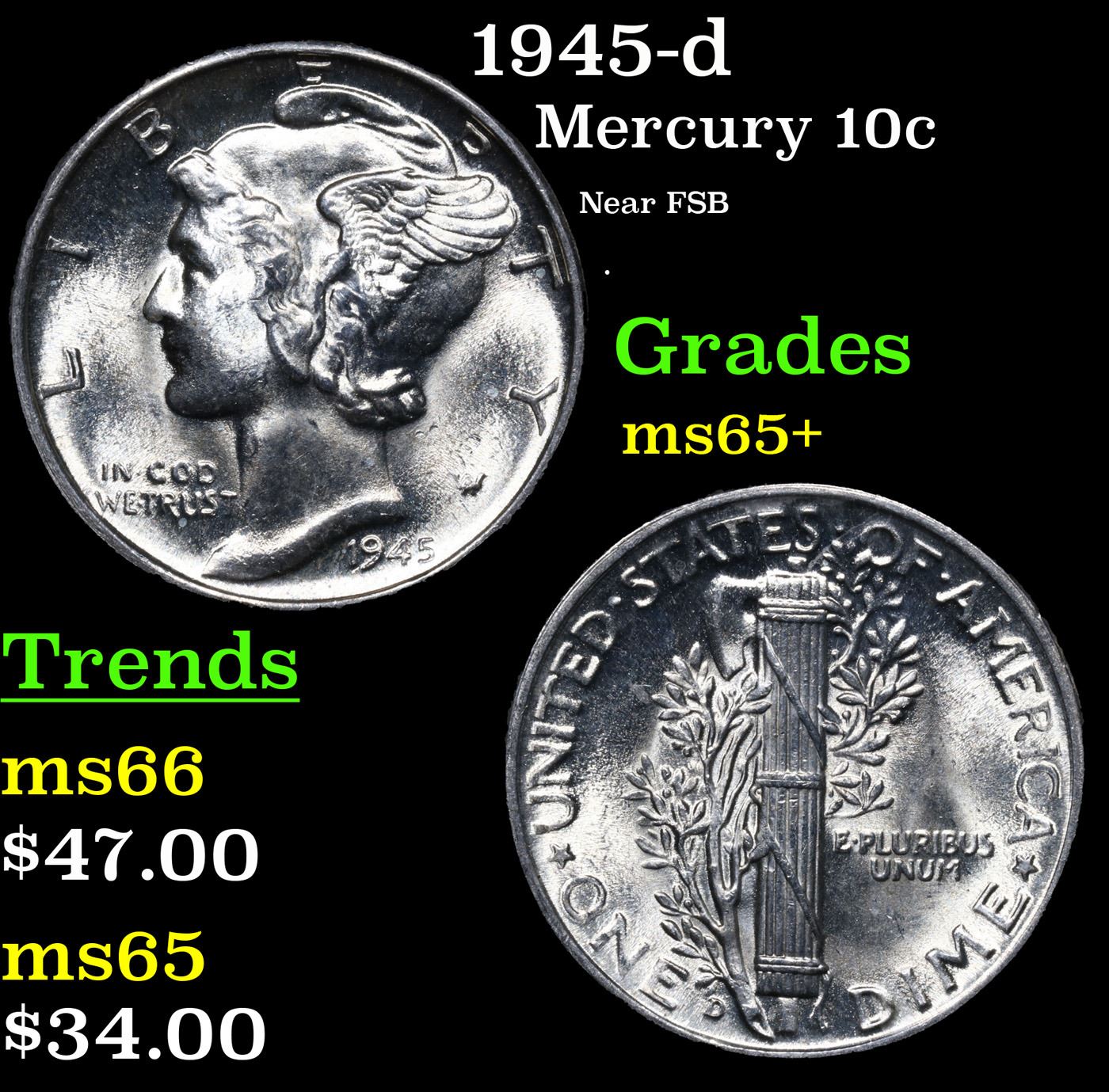 1945-d Mercury Dime 10c Grades GEM+ Unc.
