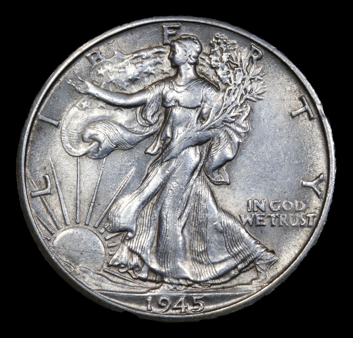 1945-d . Very Near Unc Walking Liberty Half Dollar 50c Grades Choice AU/BU Slider.