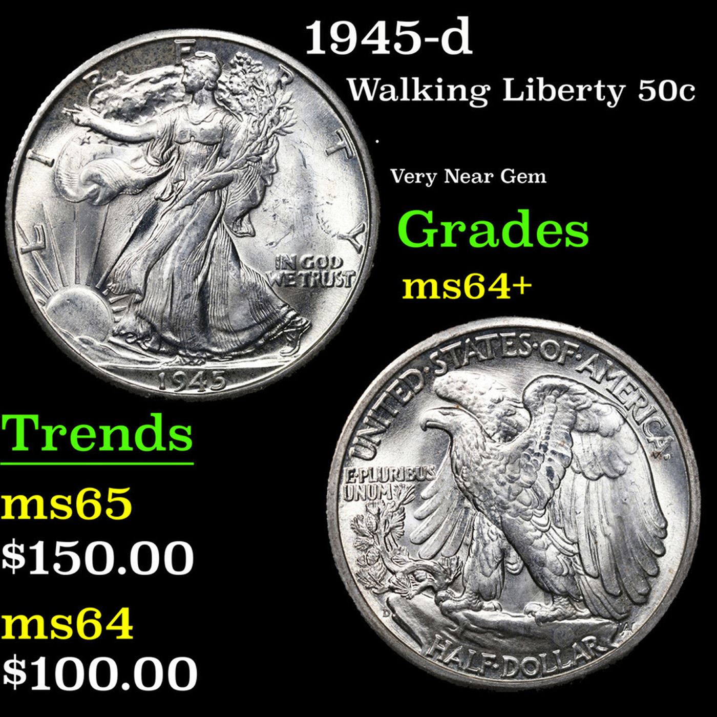 1945-d Walking Liberty Half Dollar 50c Grades Choice+ Unc.