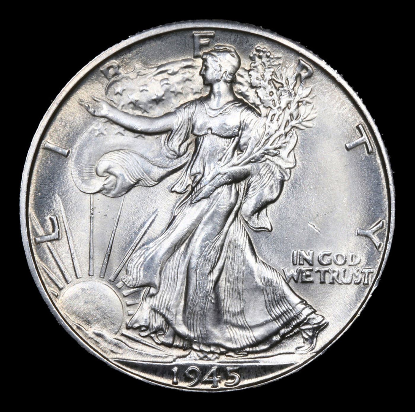 1945-d Walking Liberty Half Dollar 50c Grades Choice+ Unc.