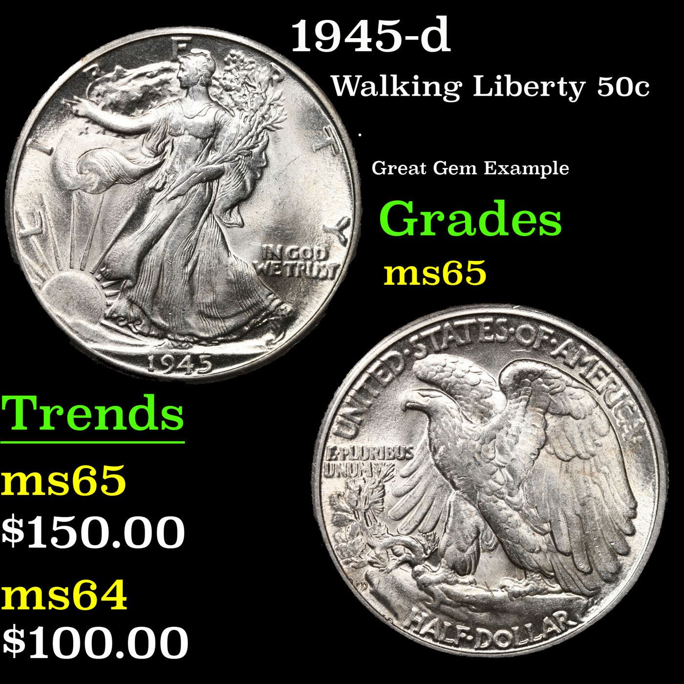 1945-d Walking Liberty Half Dollar 50c Grades GEM Unc.