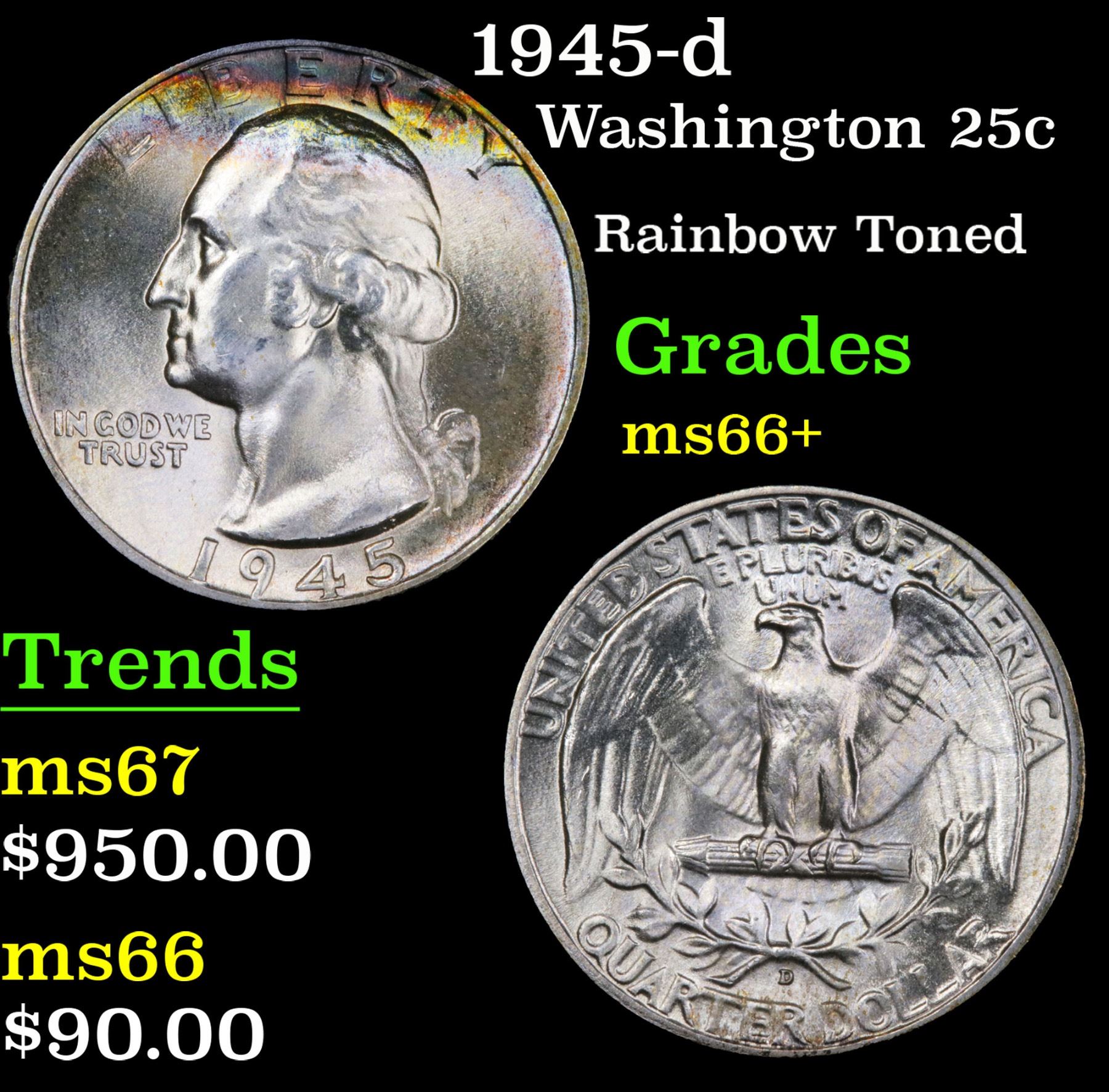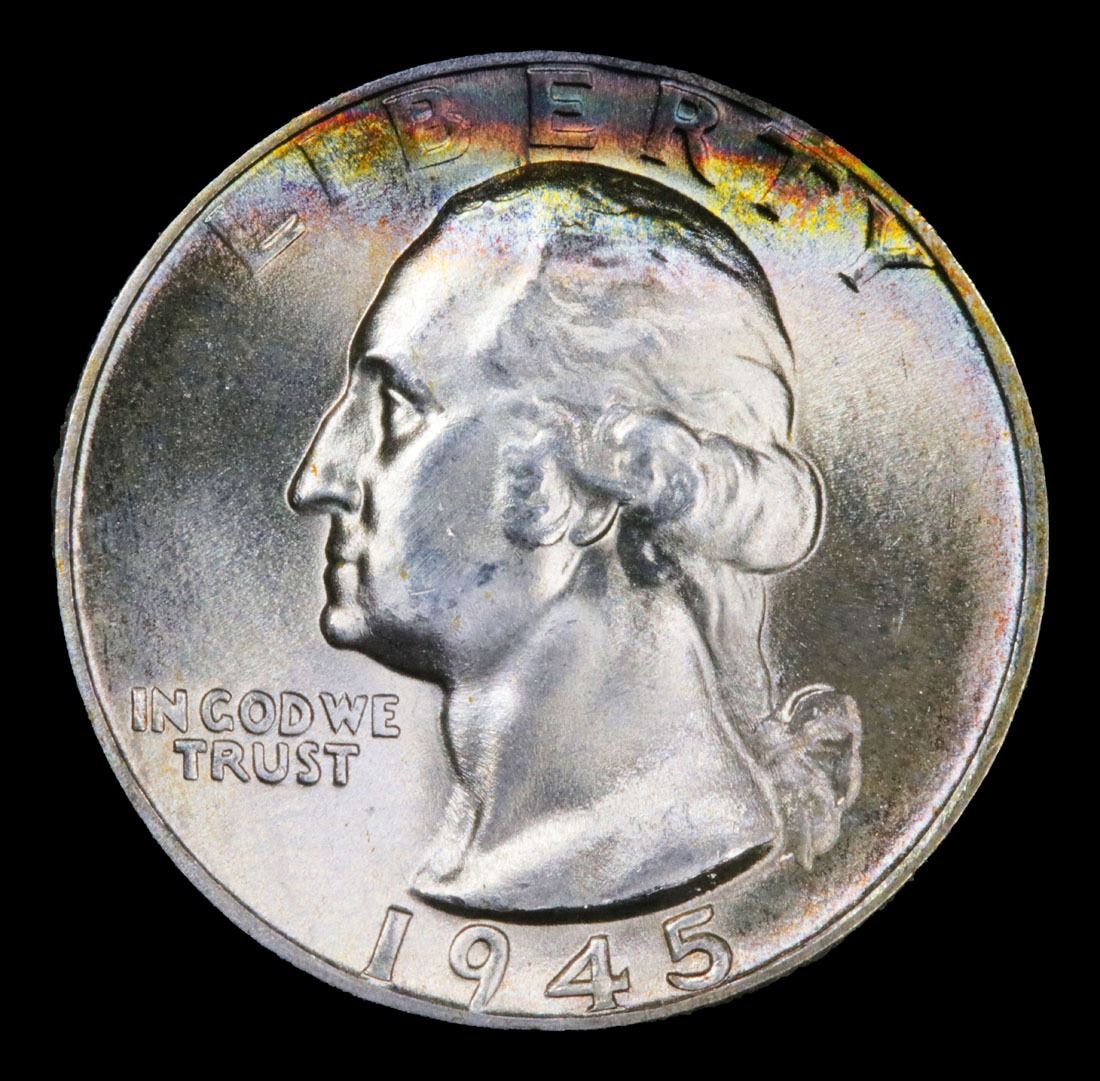 1945-d Rainbow Toned . Washington Quarter 25c Grades GEM++ Unc.