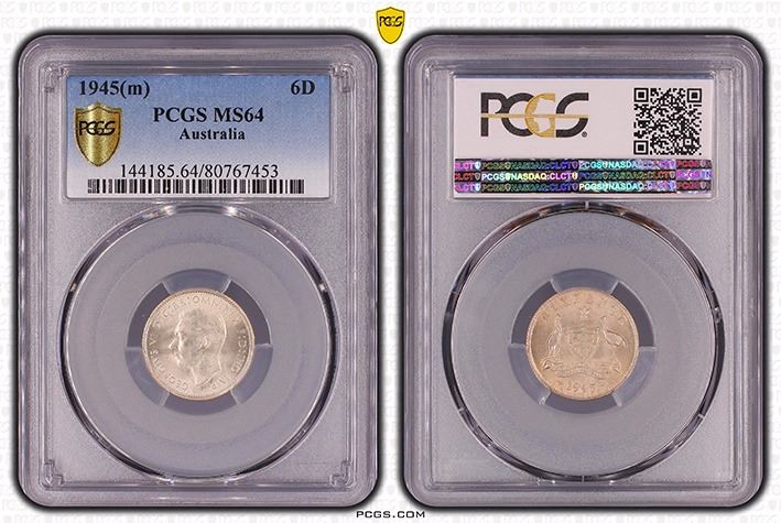 1945(m) Australian Sixpence - PCGS MS 64