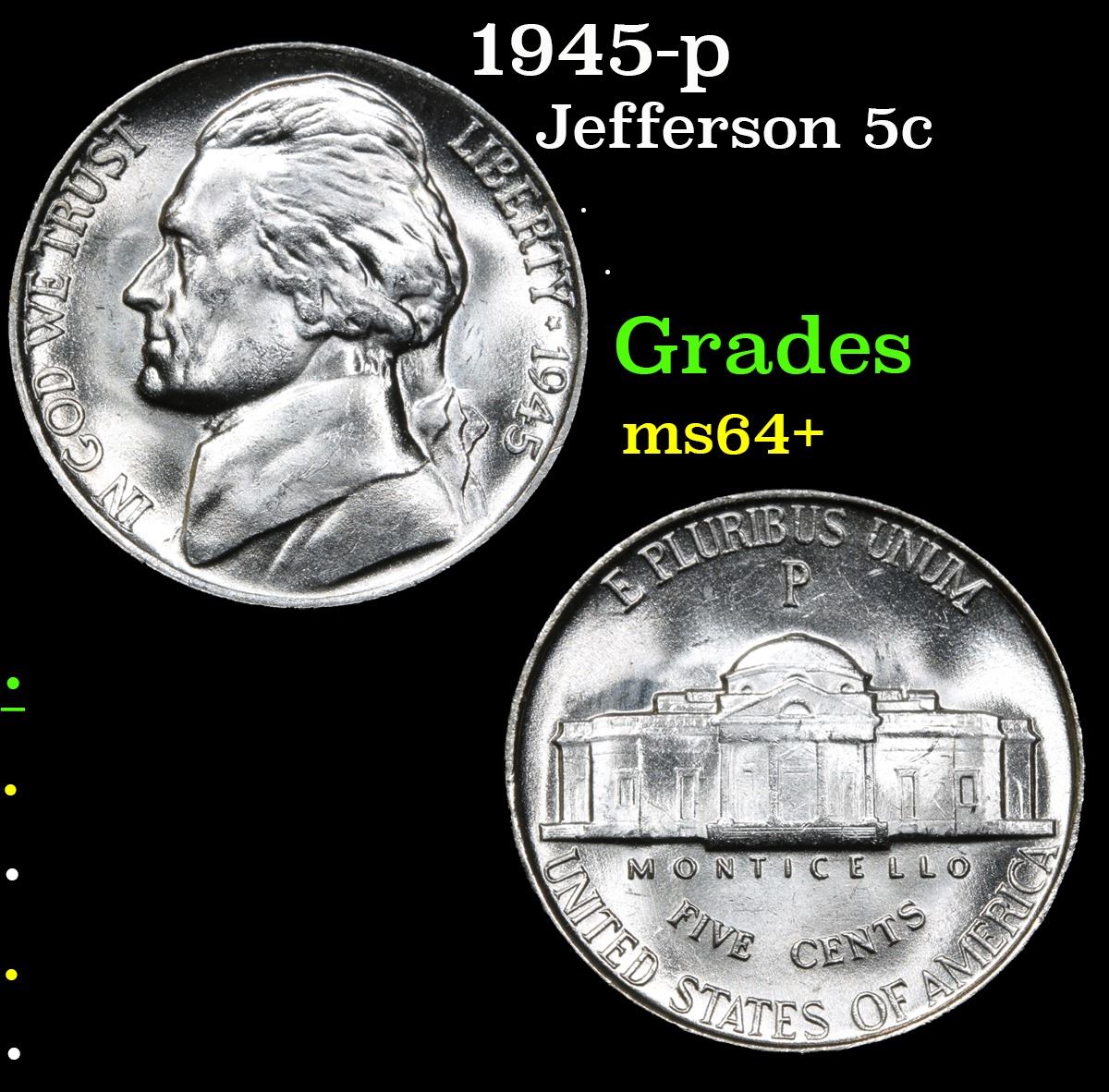 1945-p . . Jefferson Nickel 5c Grades Choice+ Unc.