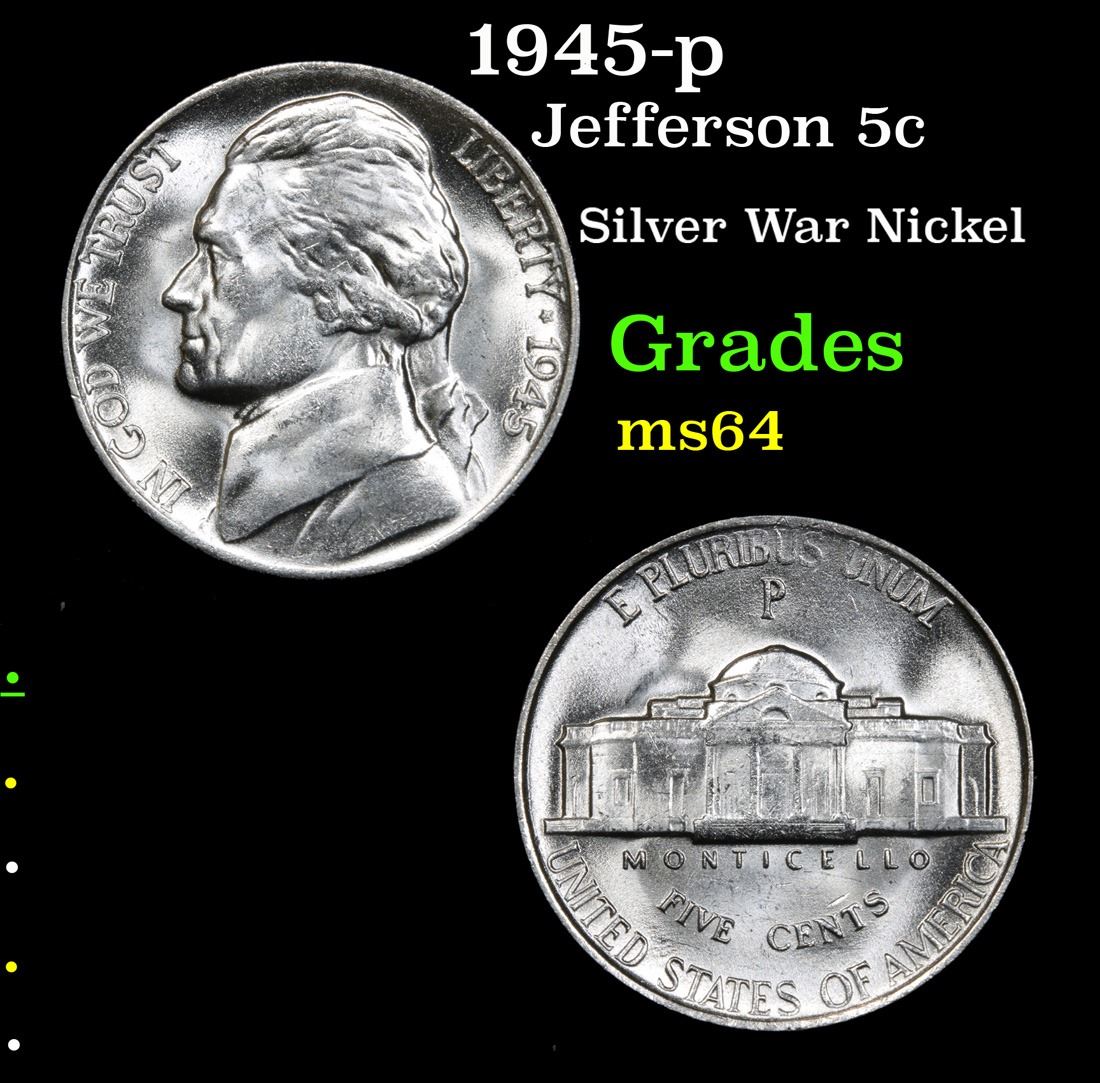 1945-p Silver War Nickel . Jefferson Nickel 5c Grades Choice Unc.