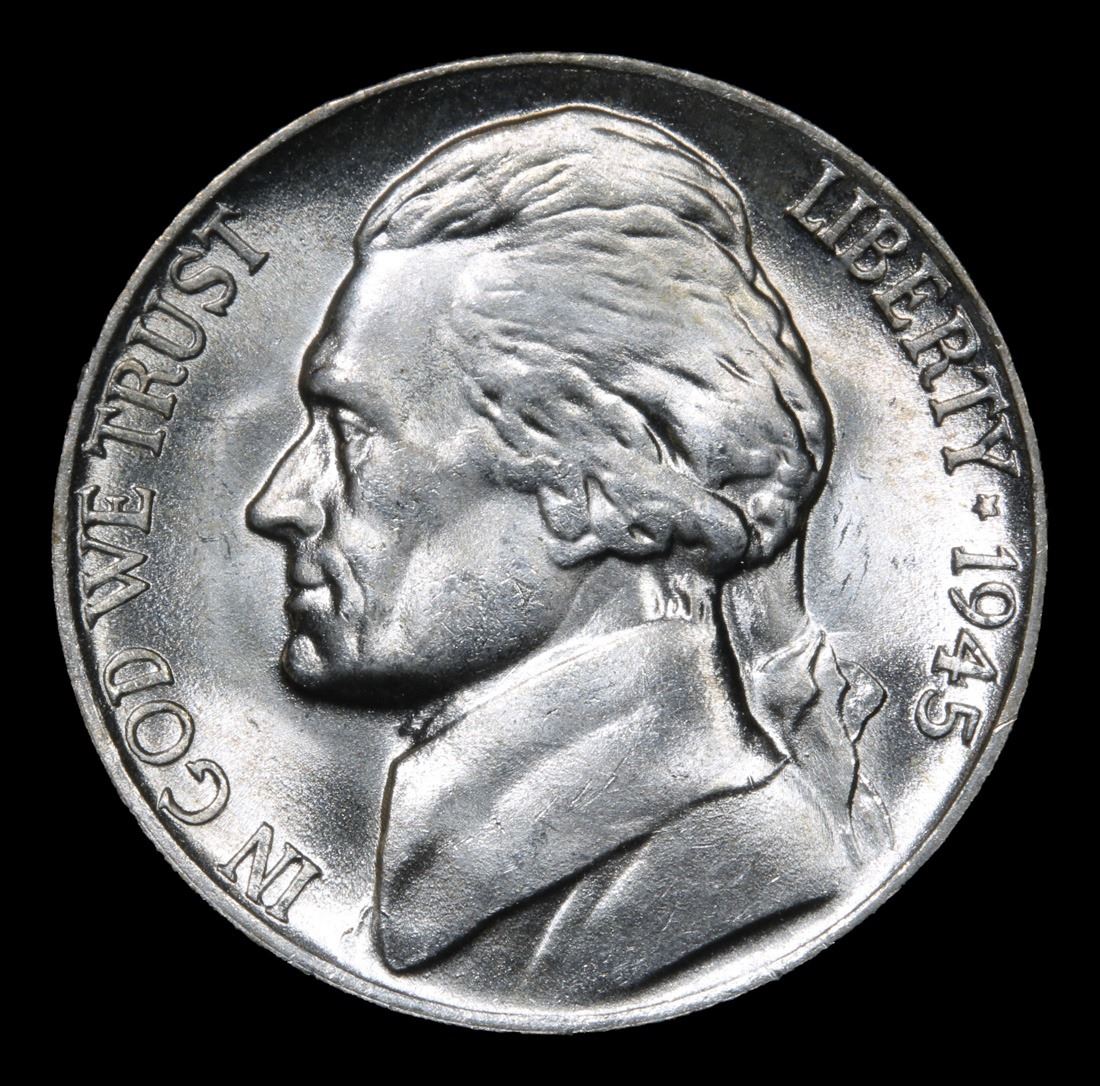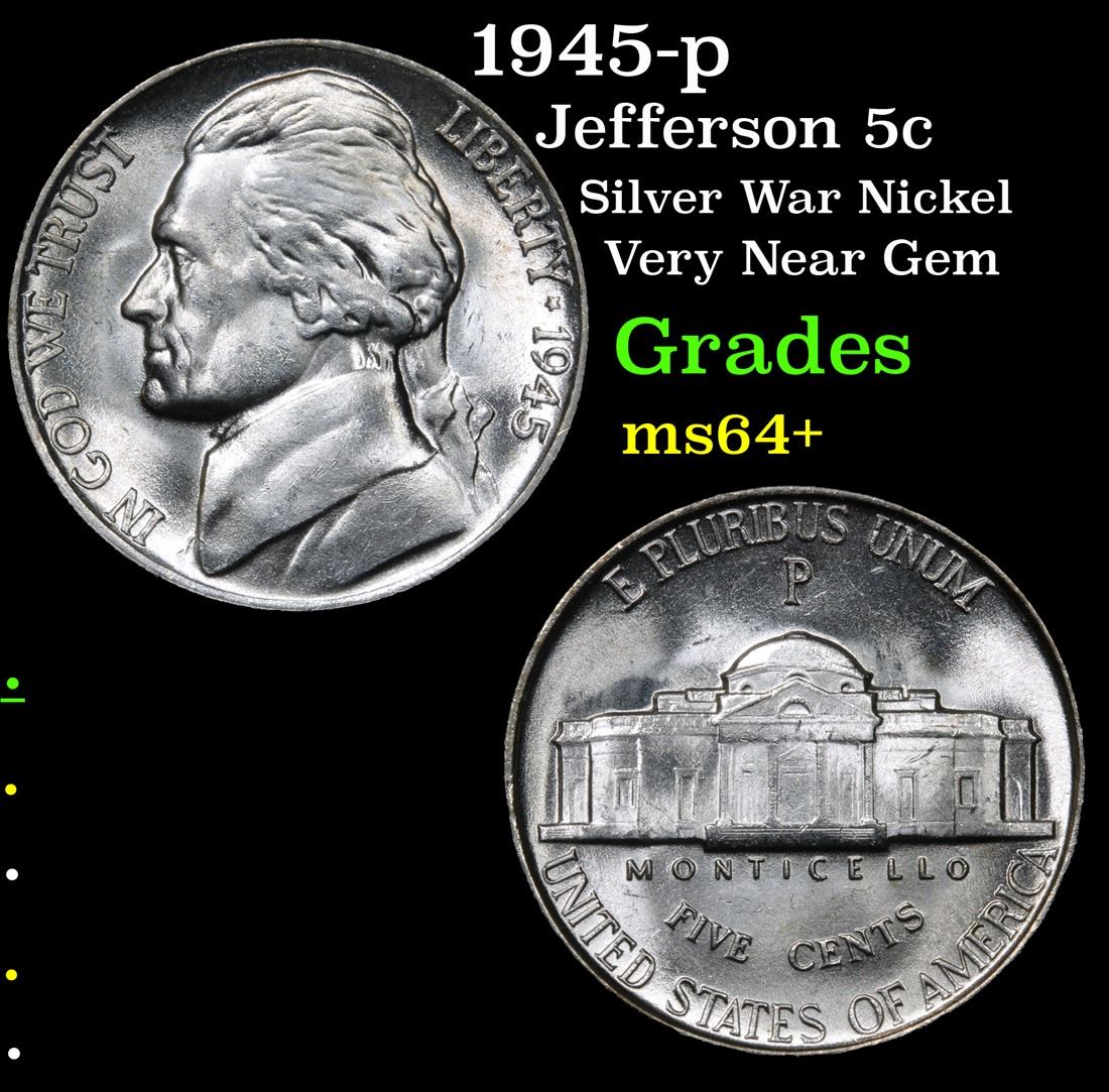 1945-p Silver War Nickel Very Near Gem Jefferson Nickel 5c Grades Choice+ Unc.