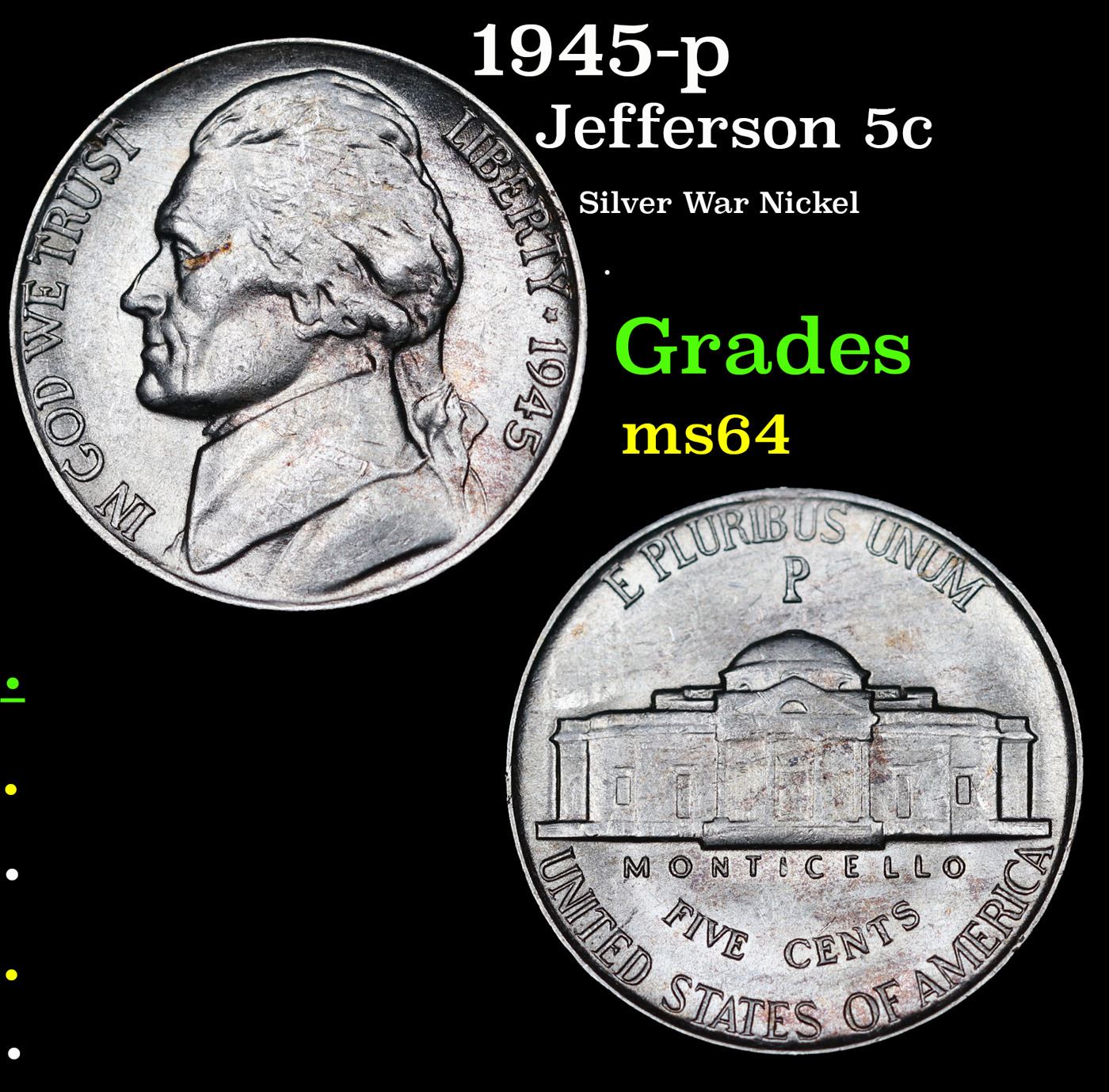 1945-p Jefferson Nickel 5c Grades Choice Unc.