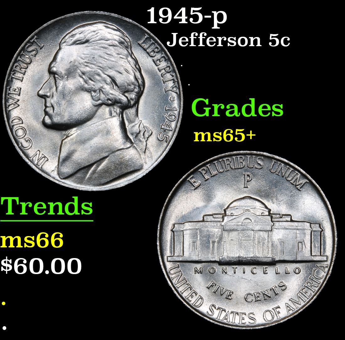 1945-p Jefferson Nickel 5c Grades GEM+ Unc.