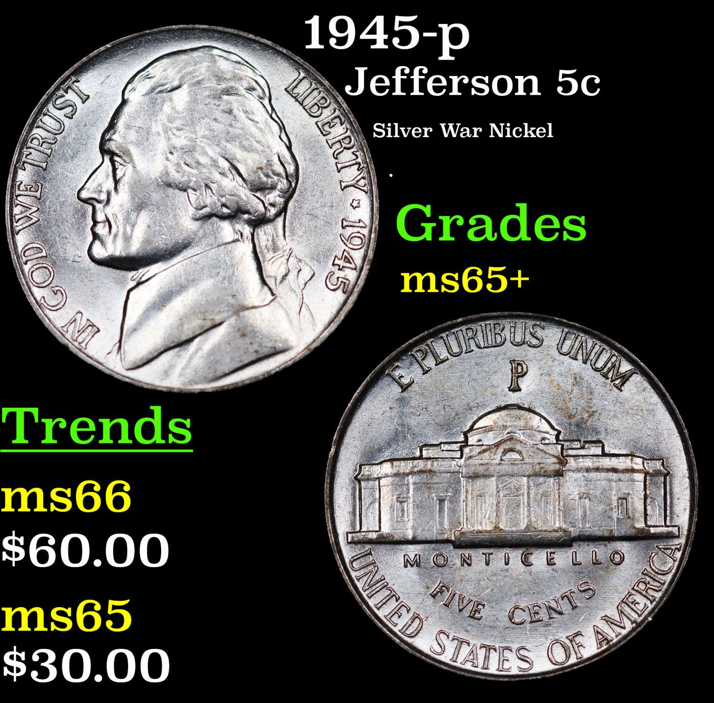 1945-p Jefferson Nickel 5c Grades GEM+ Unc.