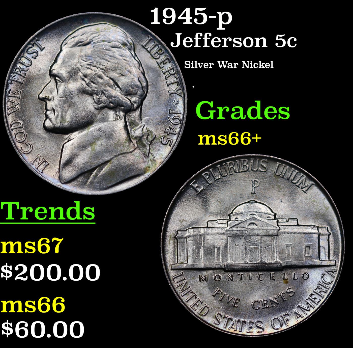 1945-p Jefferson Nickel 5c Grades GEM++ Unc.