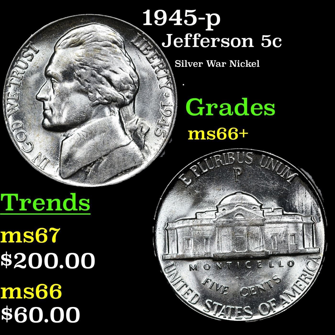 1945-p Jefferson Nickel 5c Grades GEM++ Unc.
