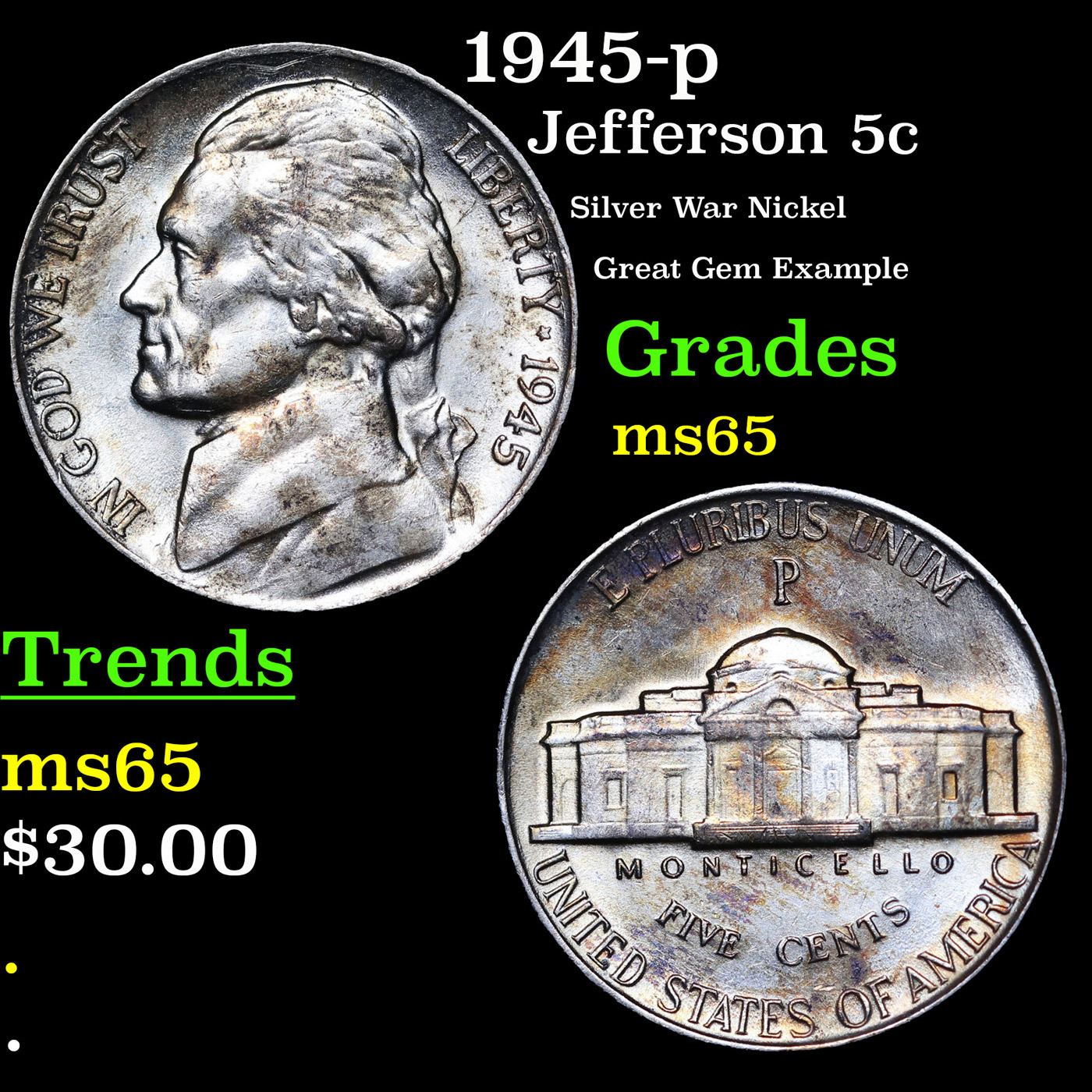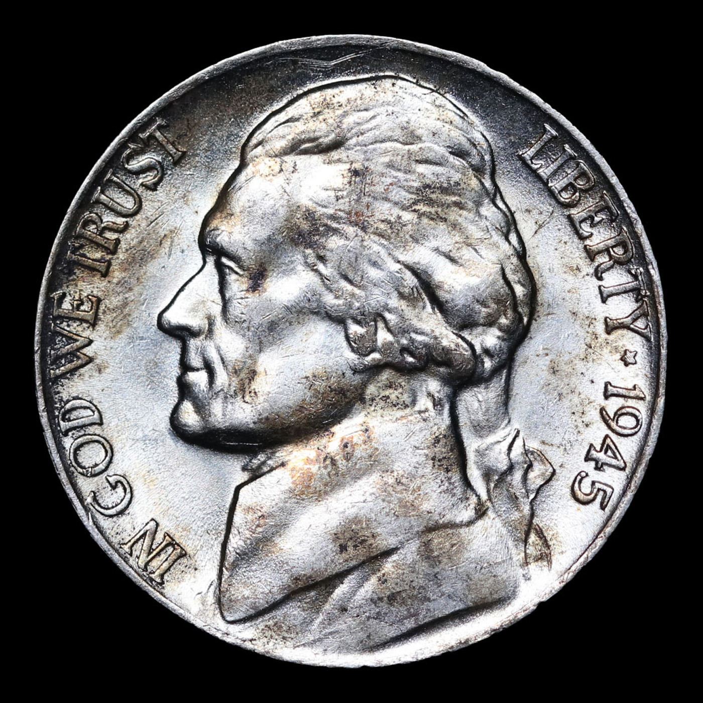 1945-p Jefferson Nickel 5c Grades GEM Unc.
