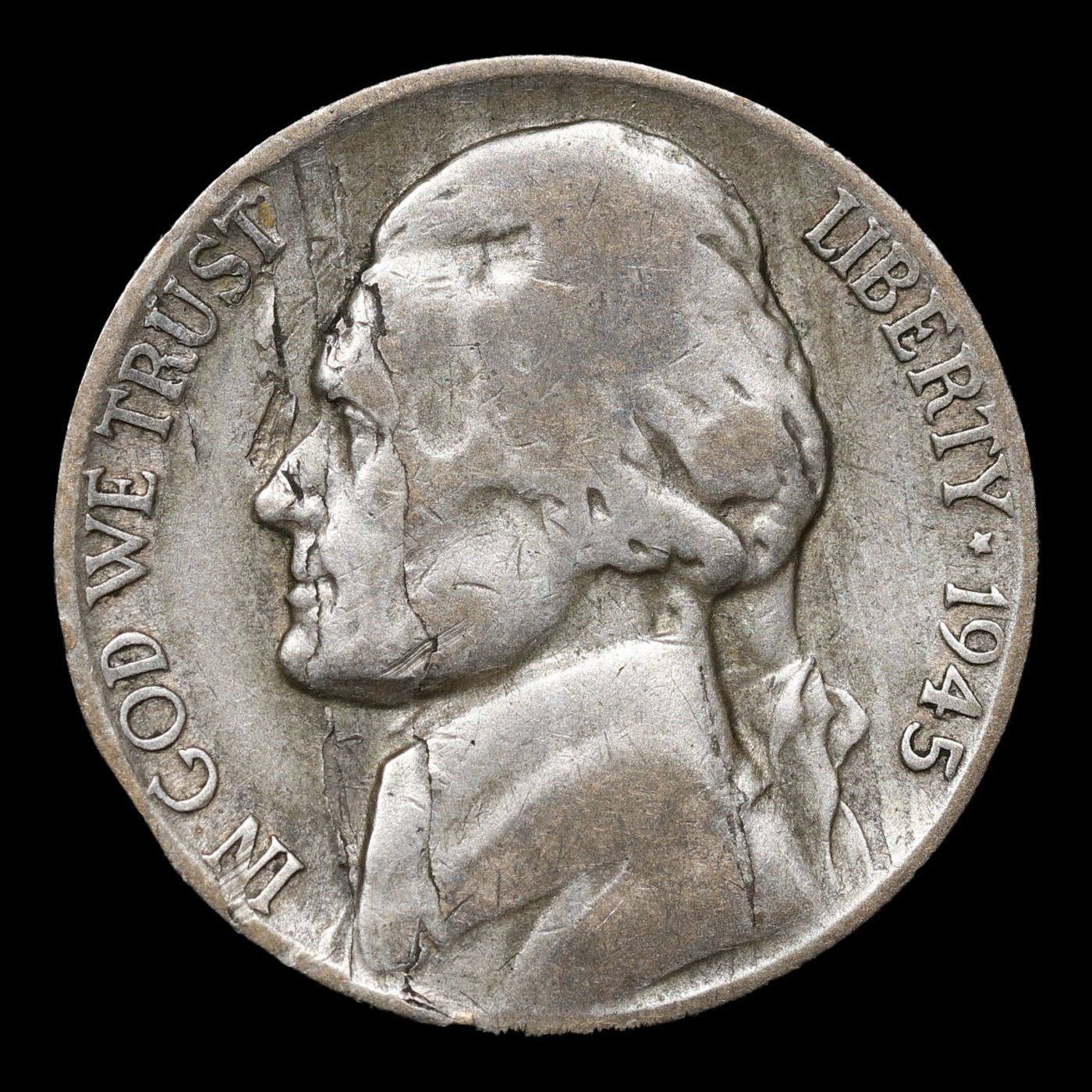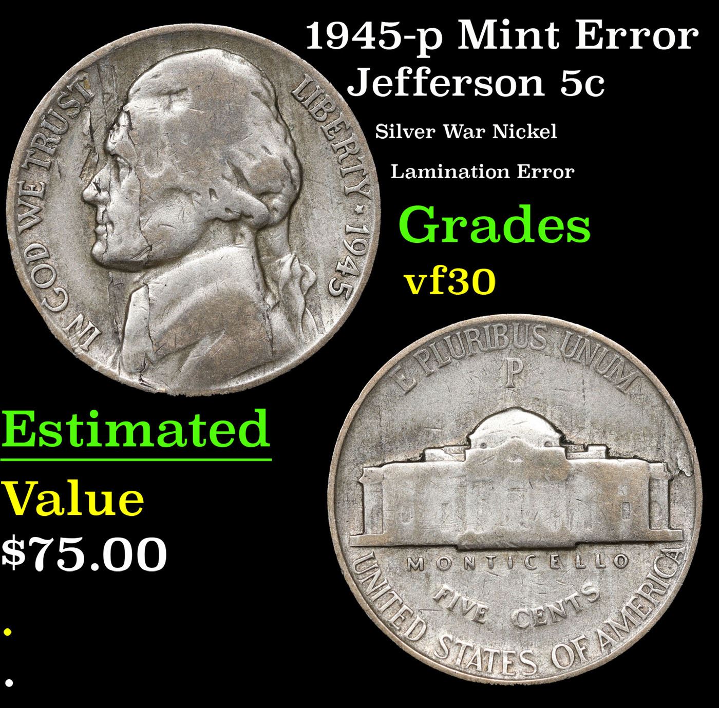 1945-p Mint Error Jefferson Nickel 5c Grades vf++.