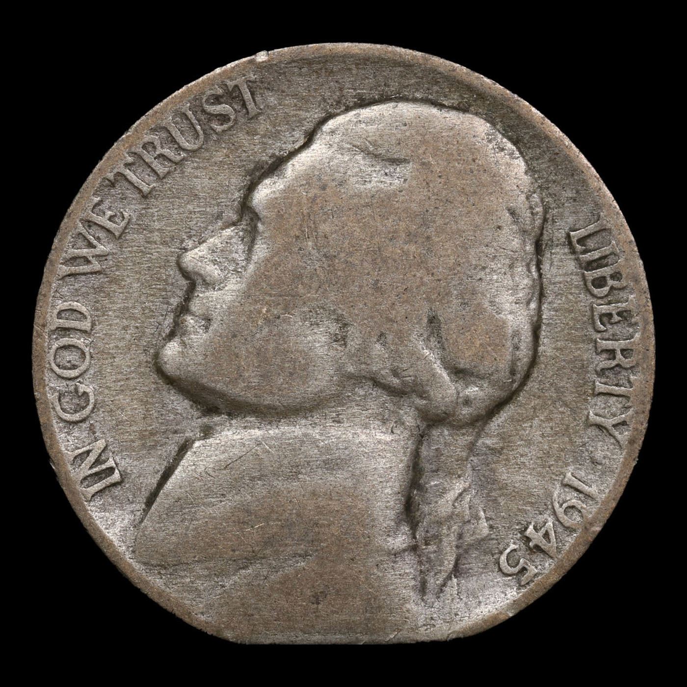 1945-p Mint Error Jefferson Nickel 5c Grades vg+.