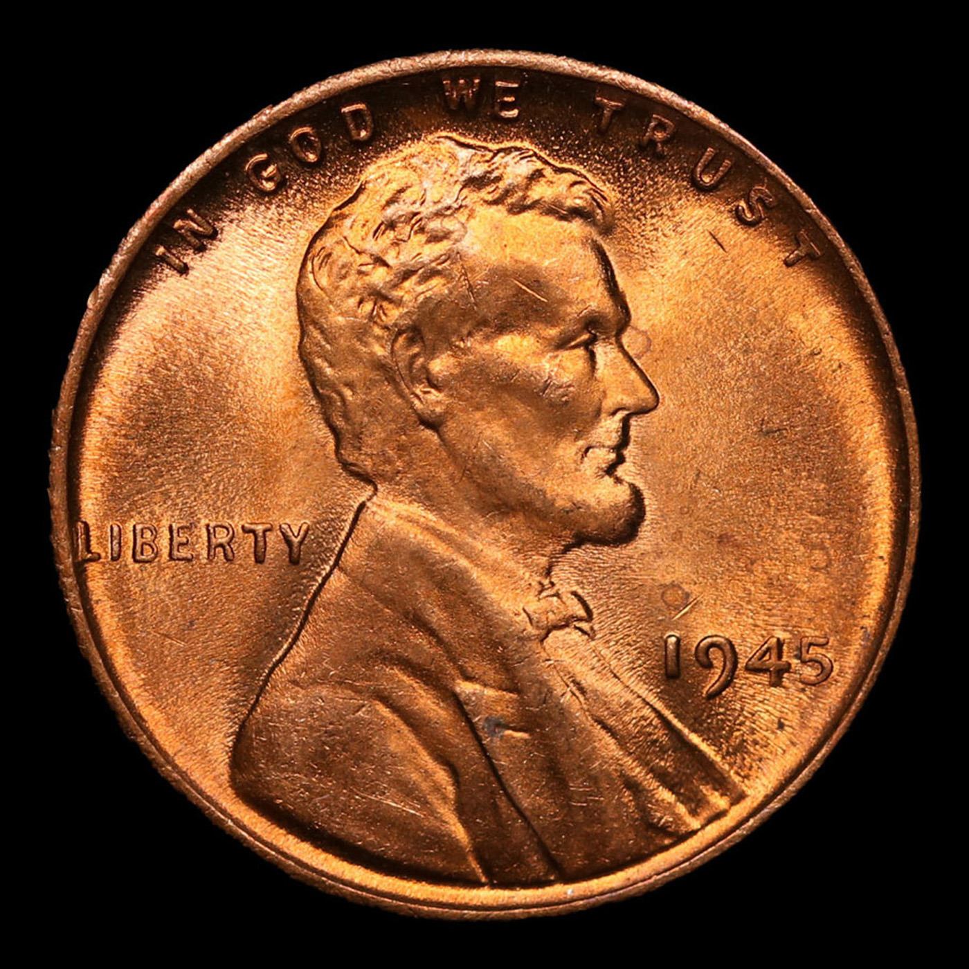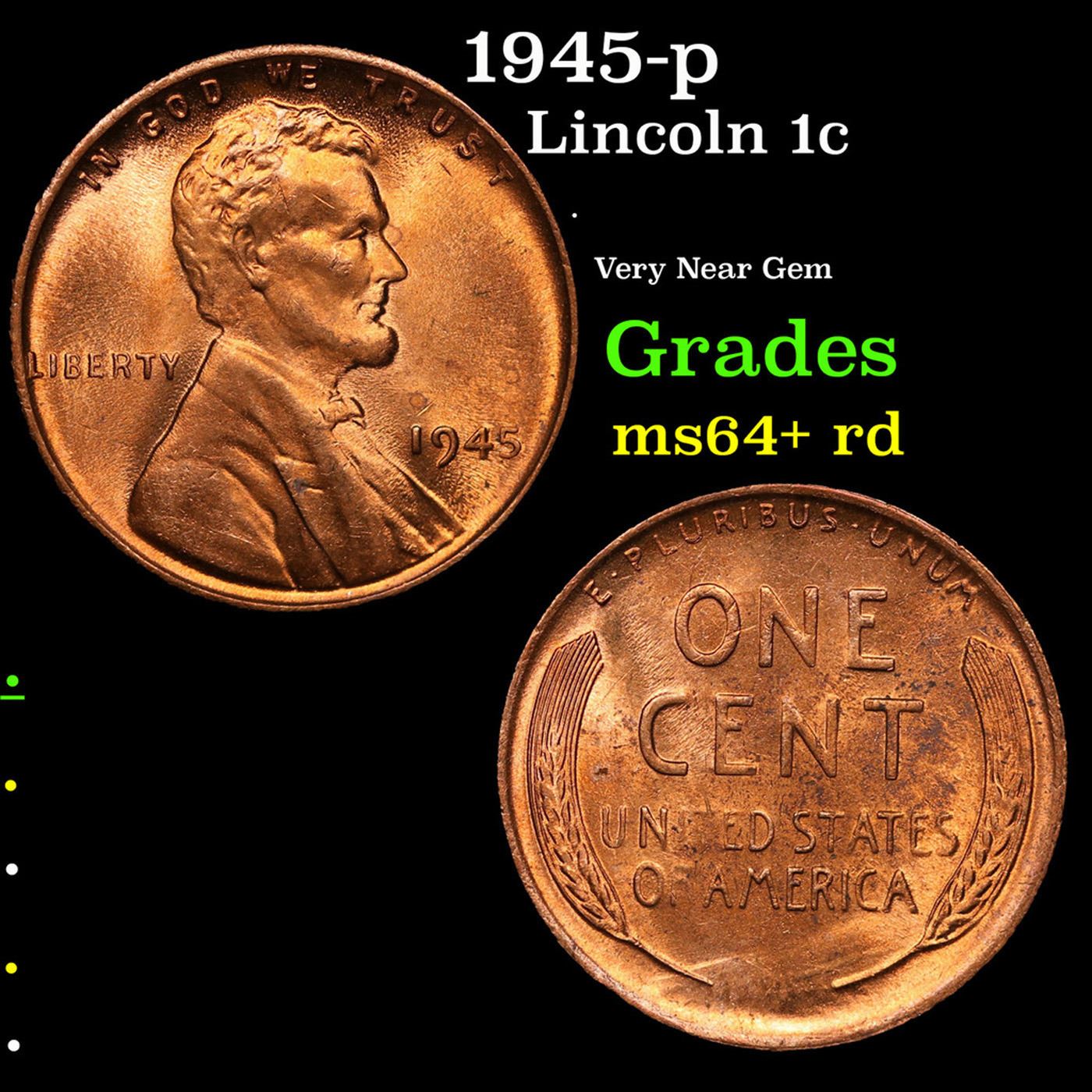 1945-p Lincoln Cent 1c Grades Choice+ Unc RD.