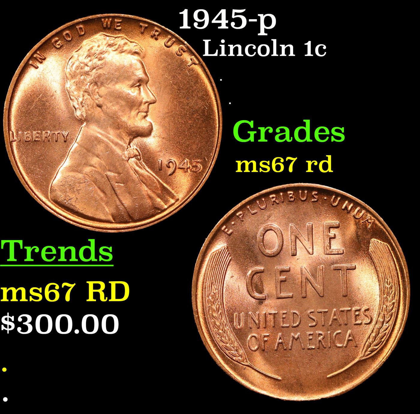 1945-p Lincoln Cent 1c Grades GEM++ Unc RD.