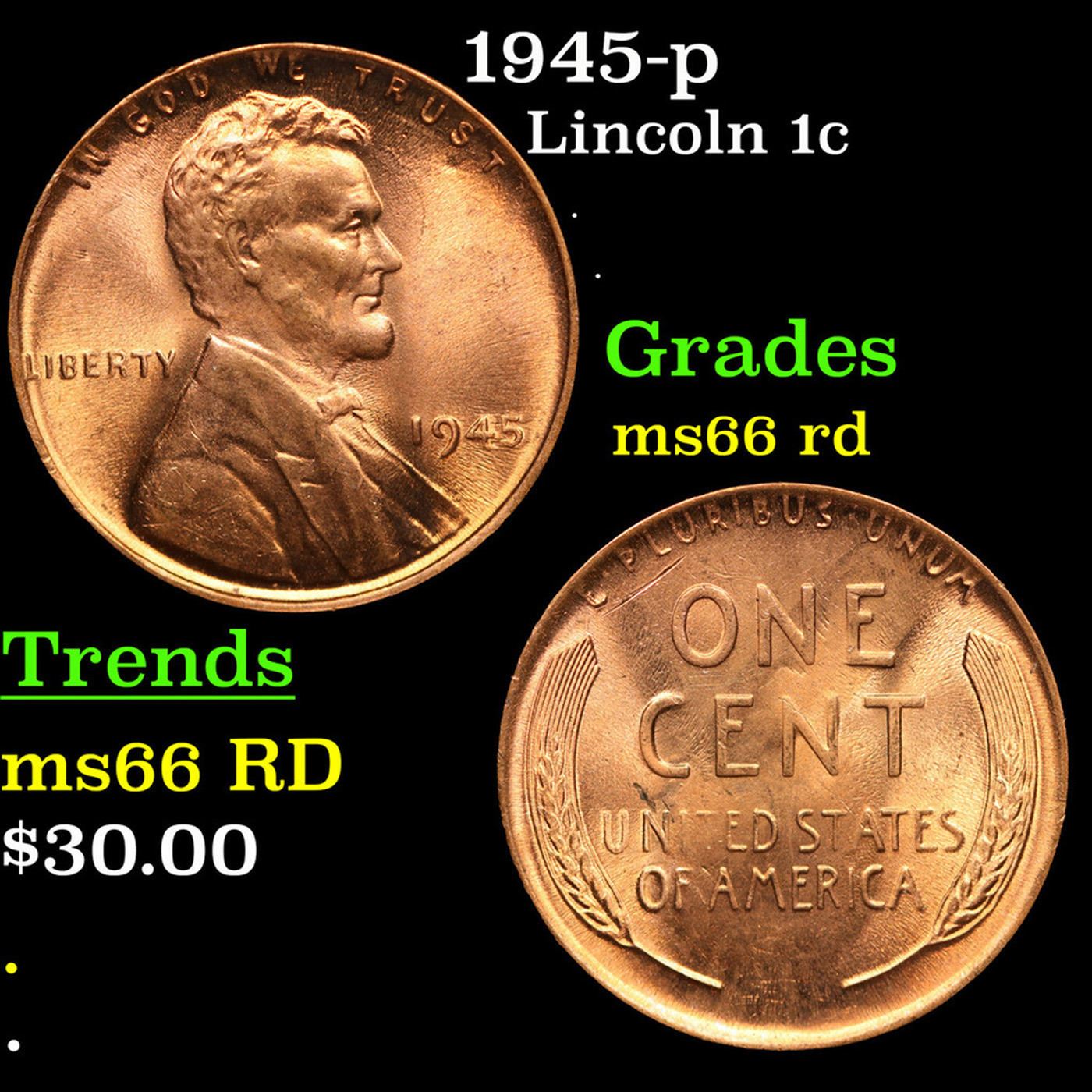 1945-p Lincoln Cent 1c Grades GEM+ Unc RD.