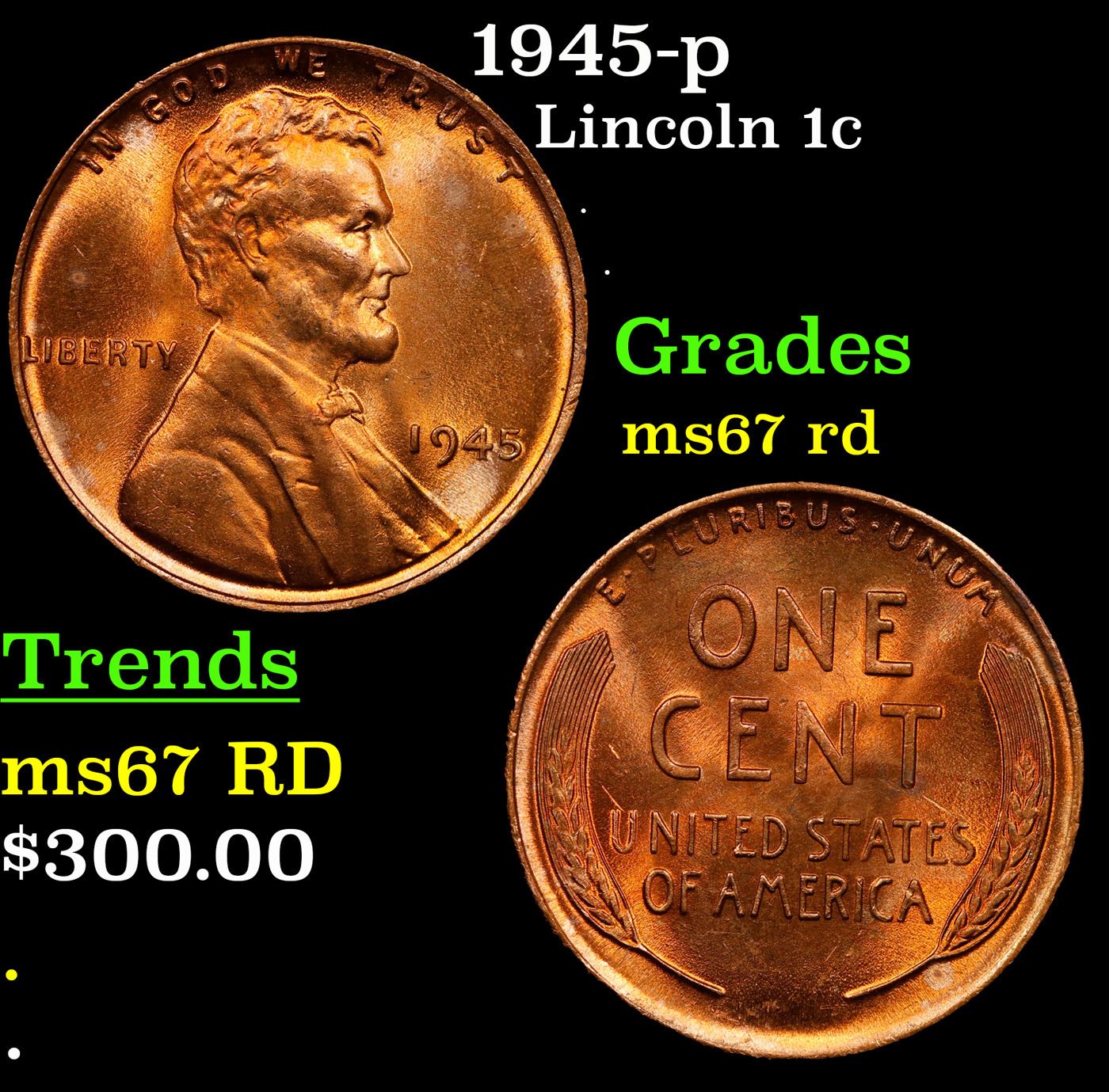 1945-p Lincoln Cent 1c Grades GEM++ Unc RD.