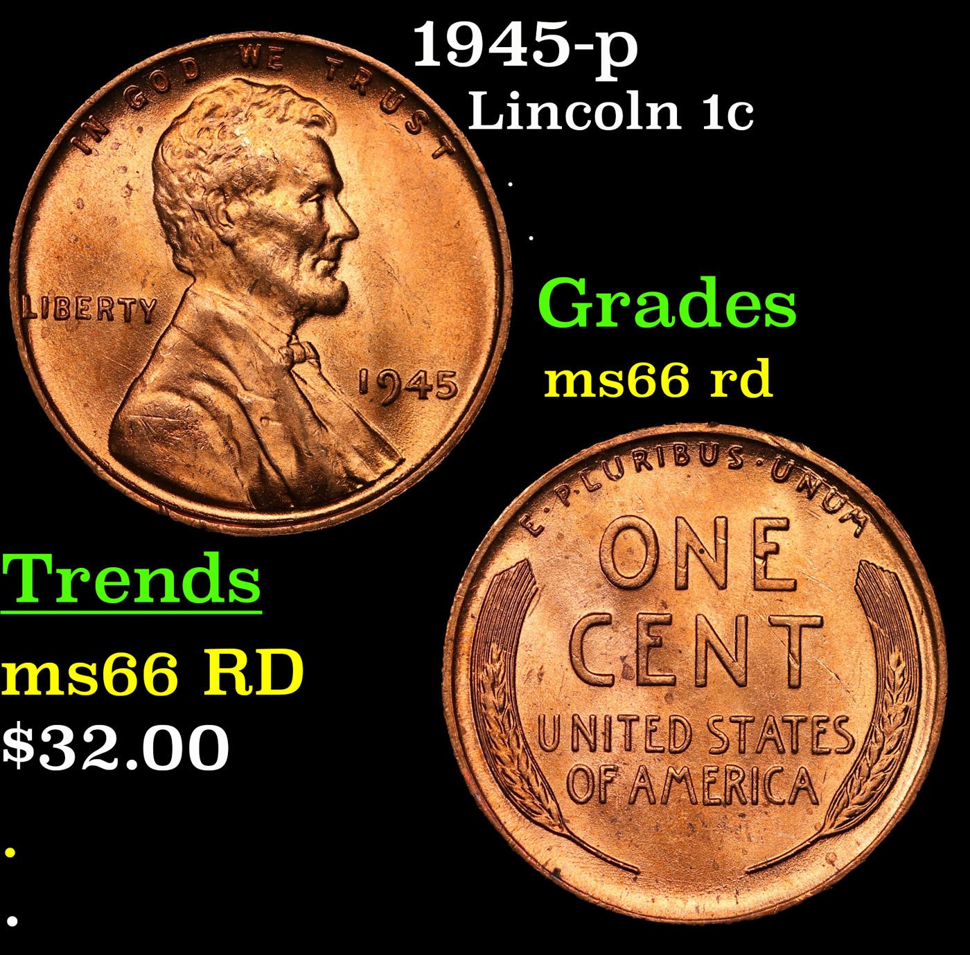1945-p Lincoln Cent 1c Grades GEM+ Unc RD.