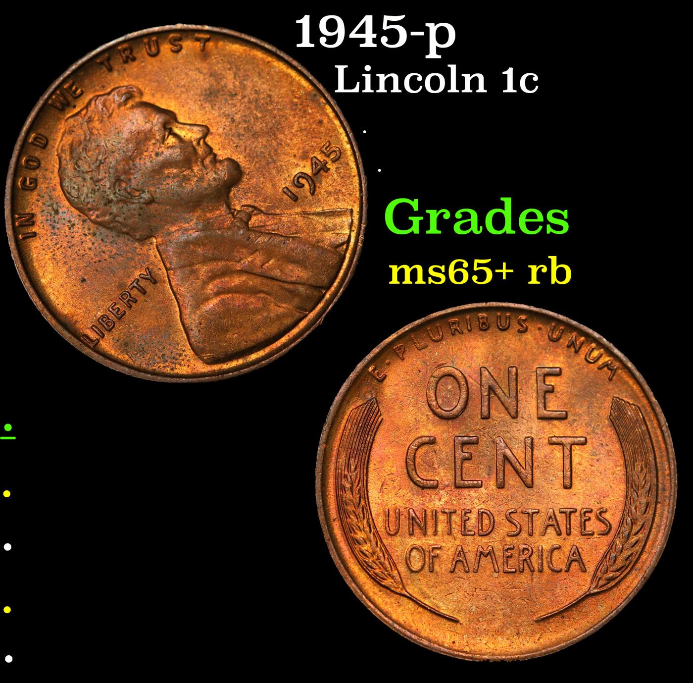1945-p Lincoln Cent 1c Grades Gem+ Unc RB.