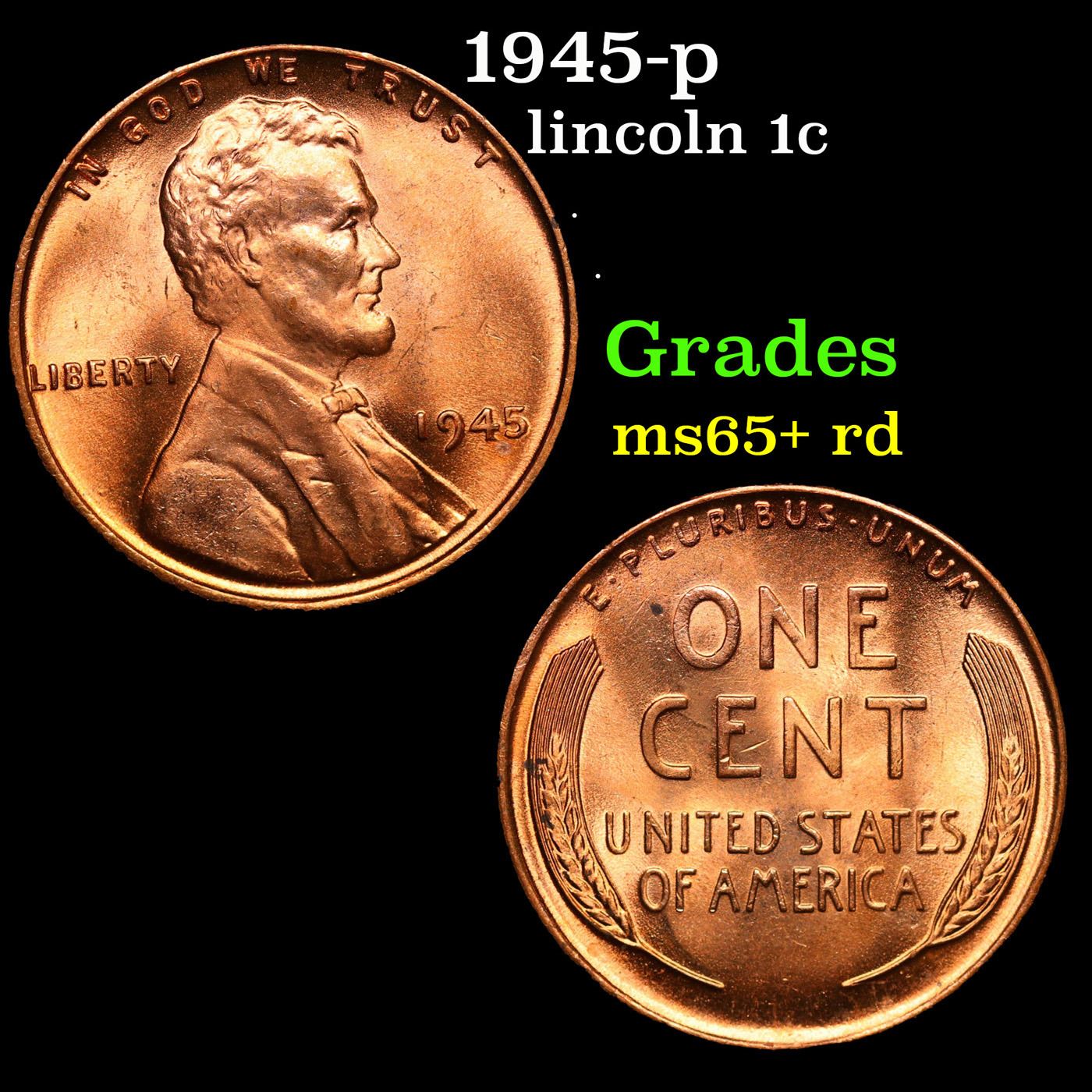 1945-p Lincoln Cent 1c Grades Gem+ Unc RD.