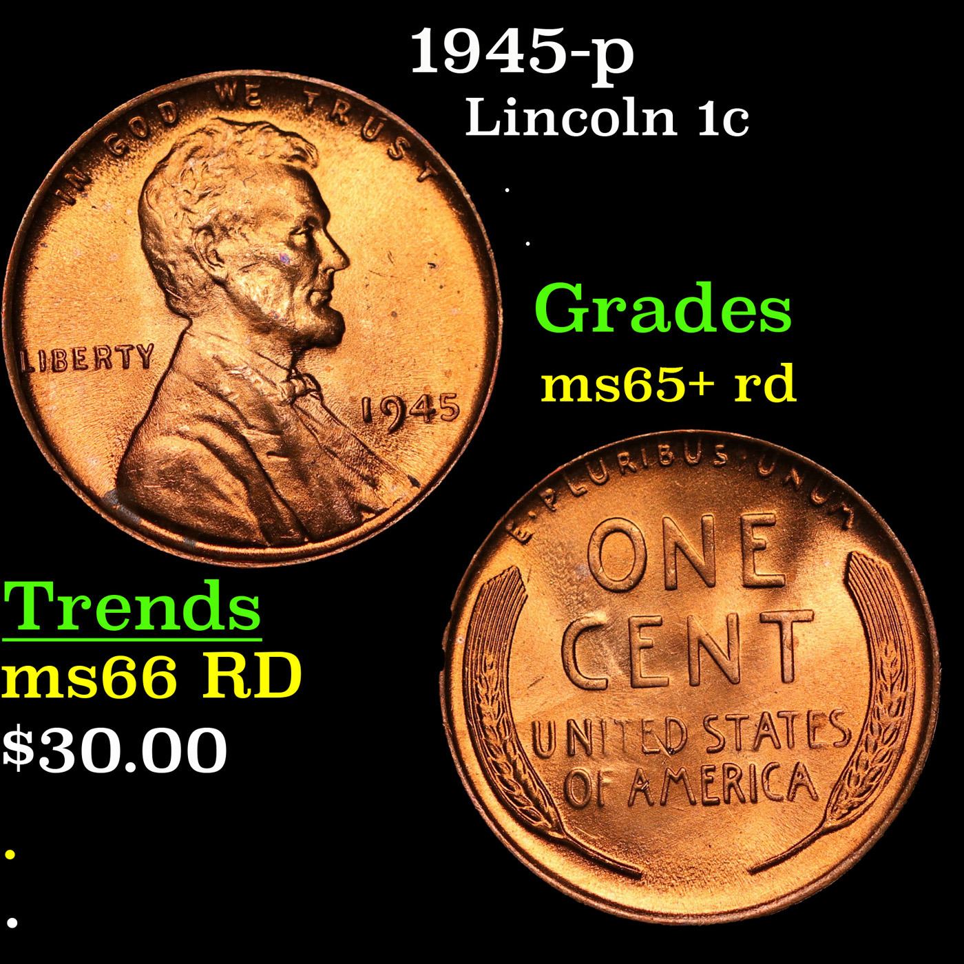 1945-p Lincoln Cent 1c Grades Gem+ Unc RD.
