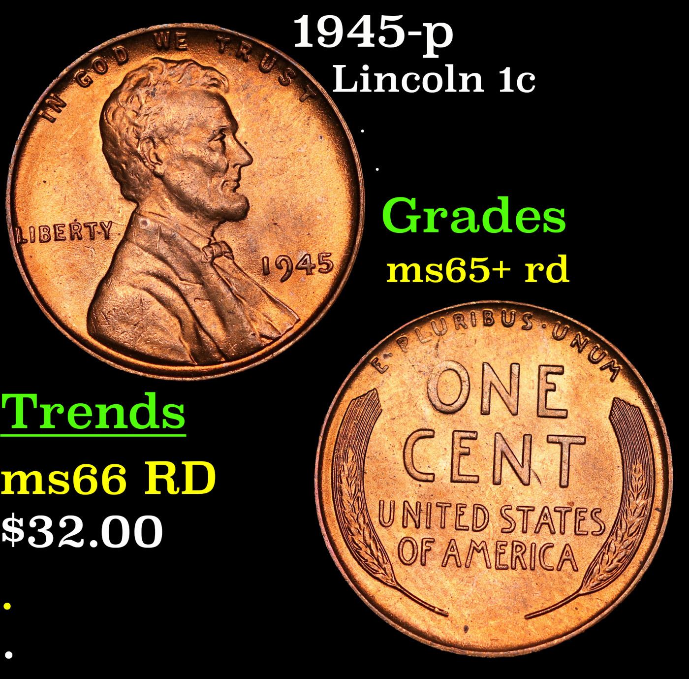 1945-p Lincoln Cent 1c Grades Gem+ Unc RD.