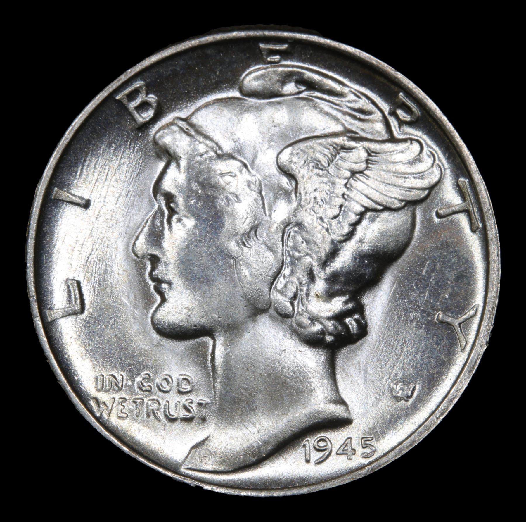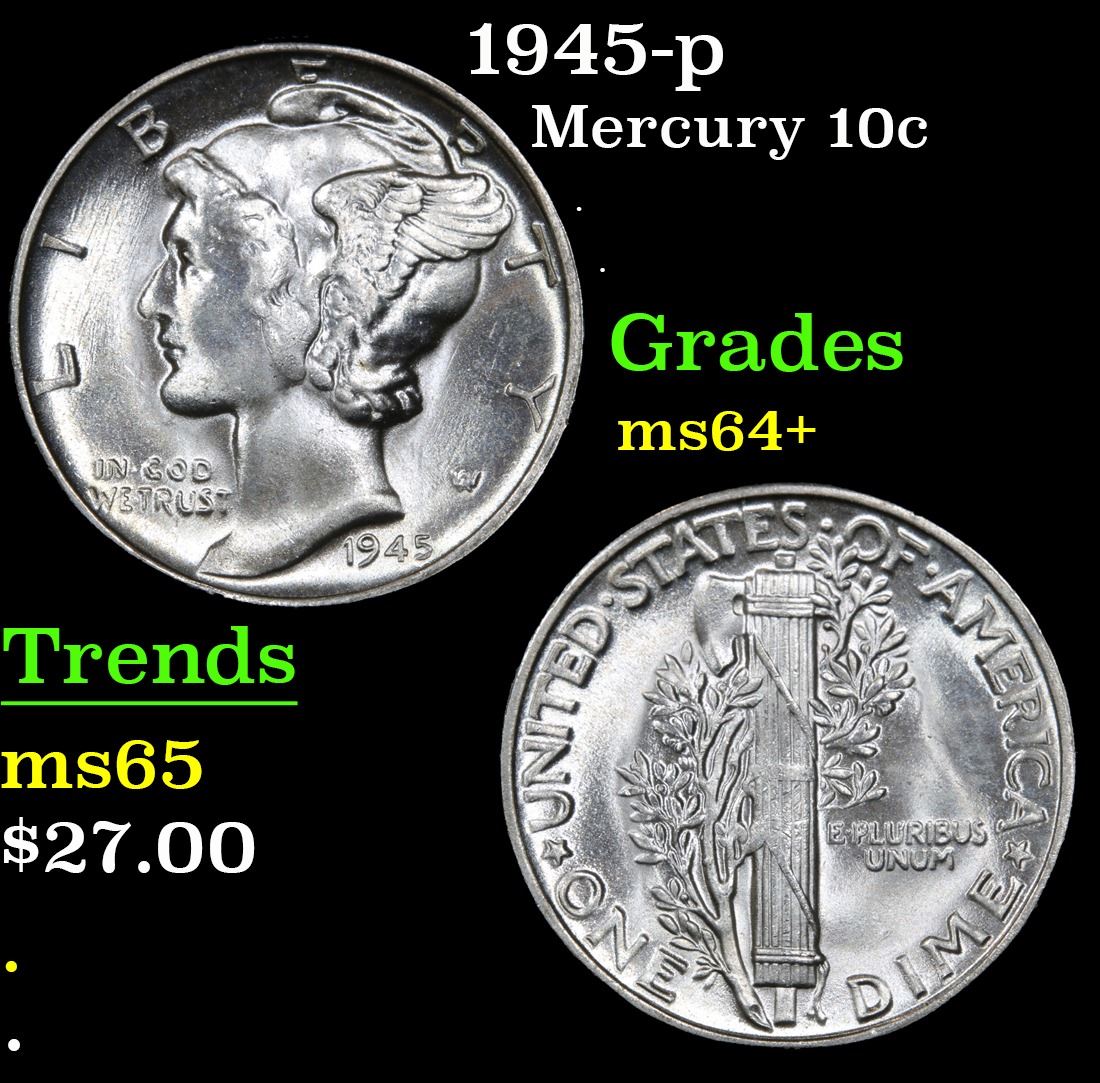 1945-p Mercury Dime 10c Grades Choice+ Unc.