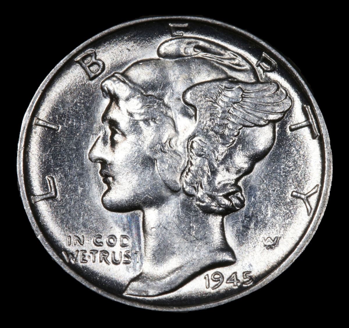 1945-p . Very Near Gem Mercury Dime 10c Grades Choice+ Unc.