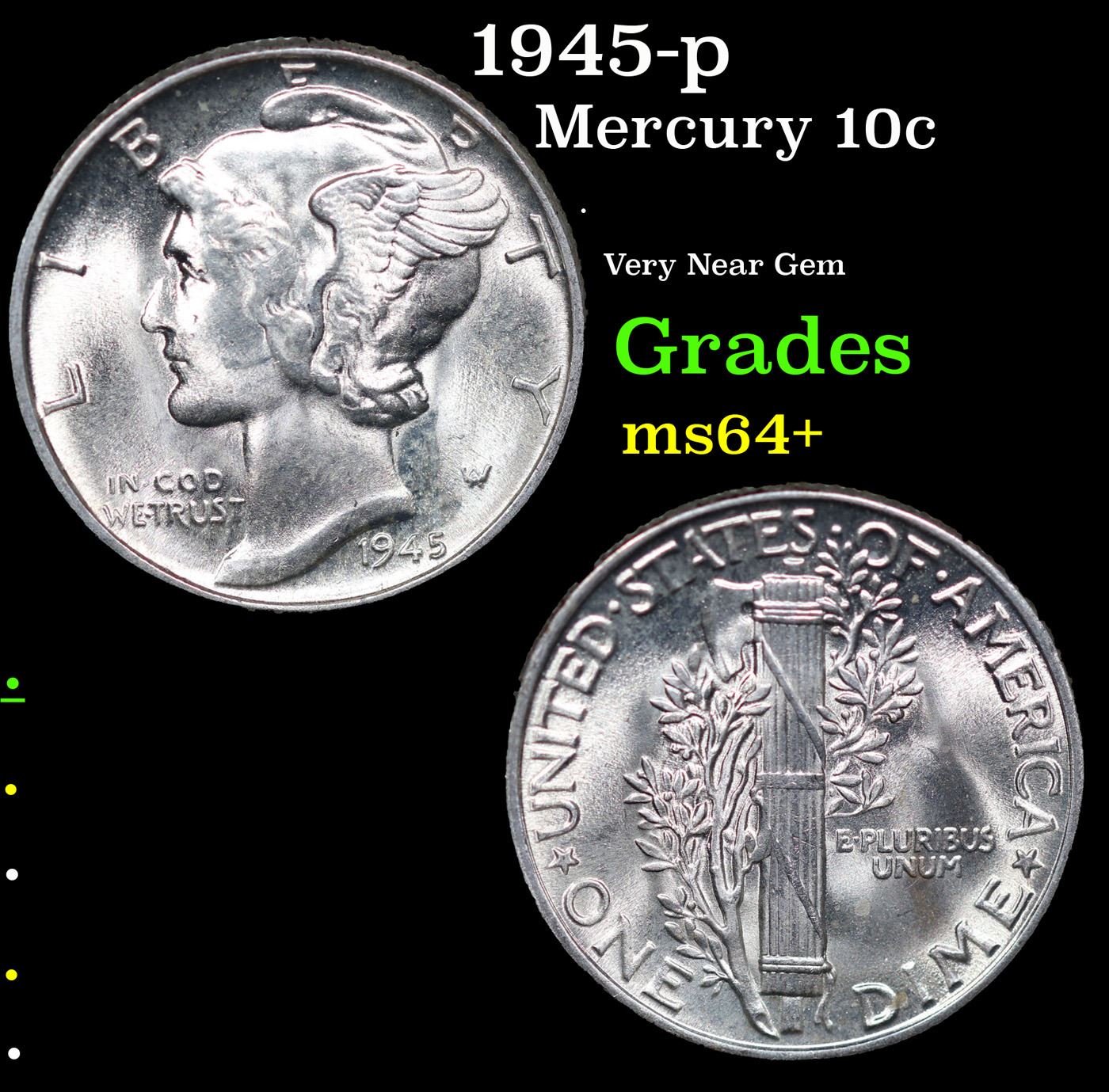1945-p Mercury Dime 10c Grades Choice+ Unc.