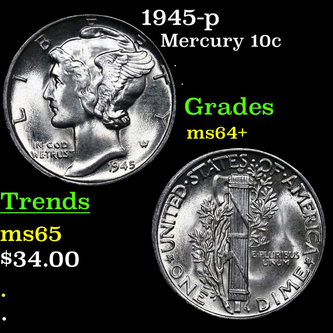 1945-p Mercury Dime 10c Grades Choice+ Unc.