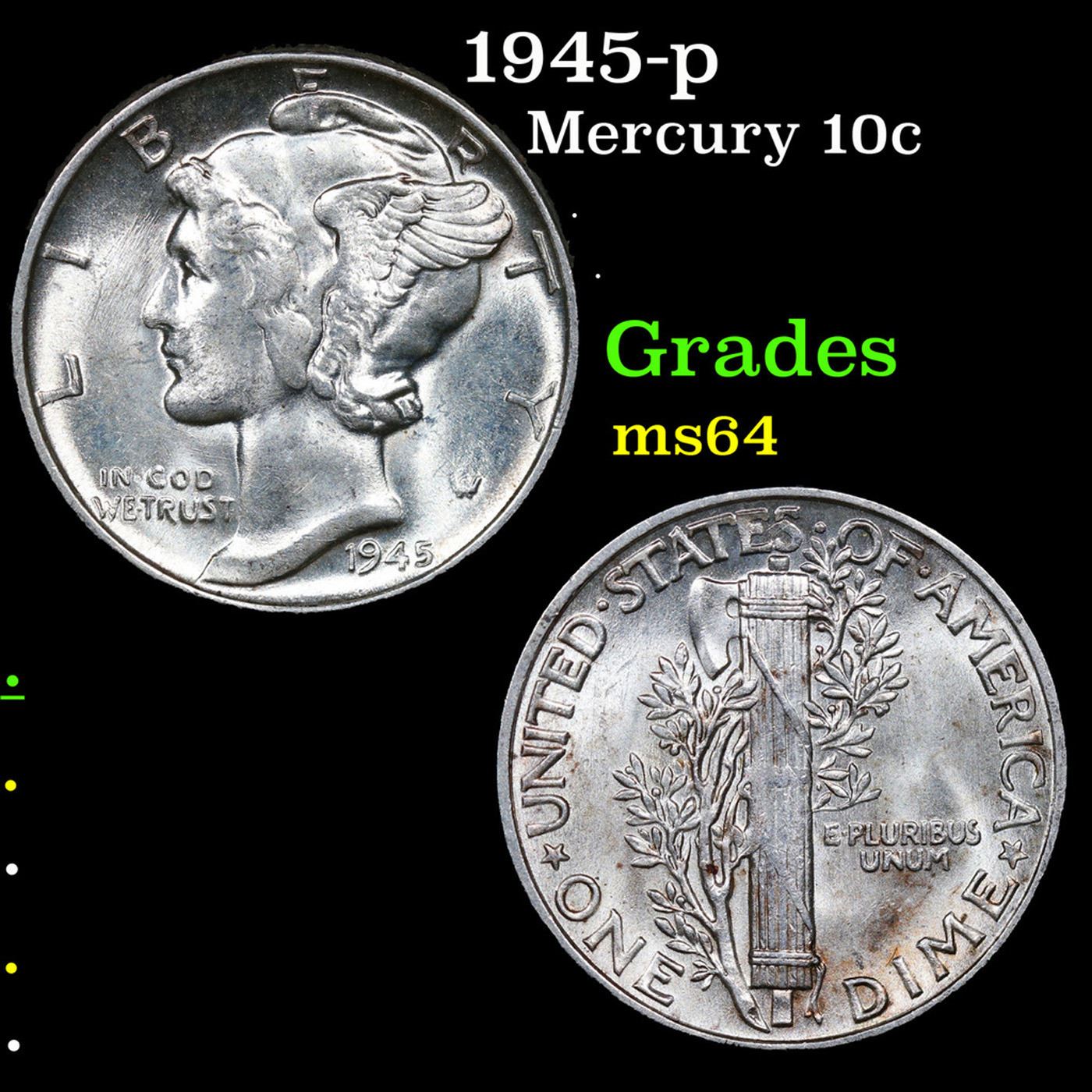 1945-p Mercury Dime 10c Grades Choice Unc.