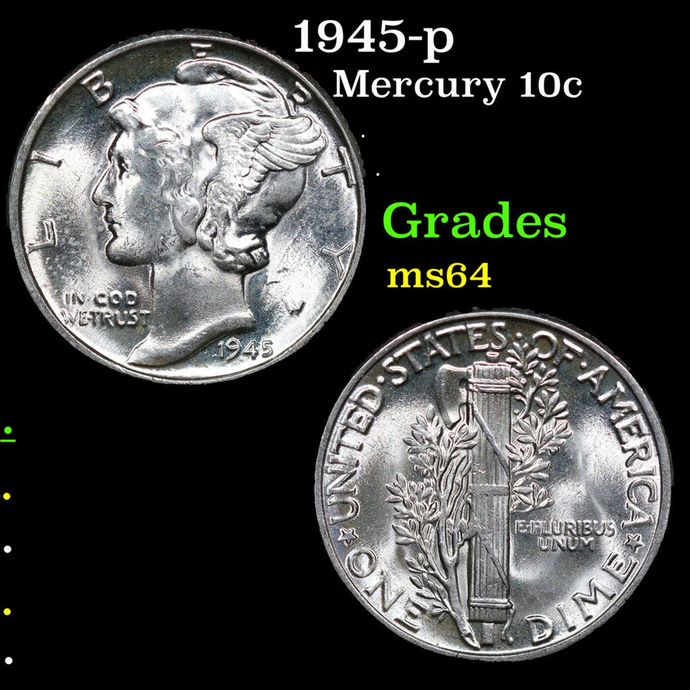 1945-p Mercury Dime 10c Grades Choice Unc.