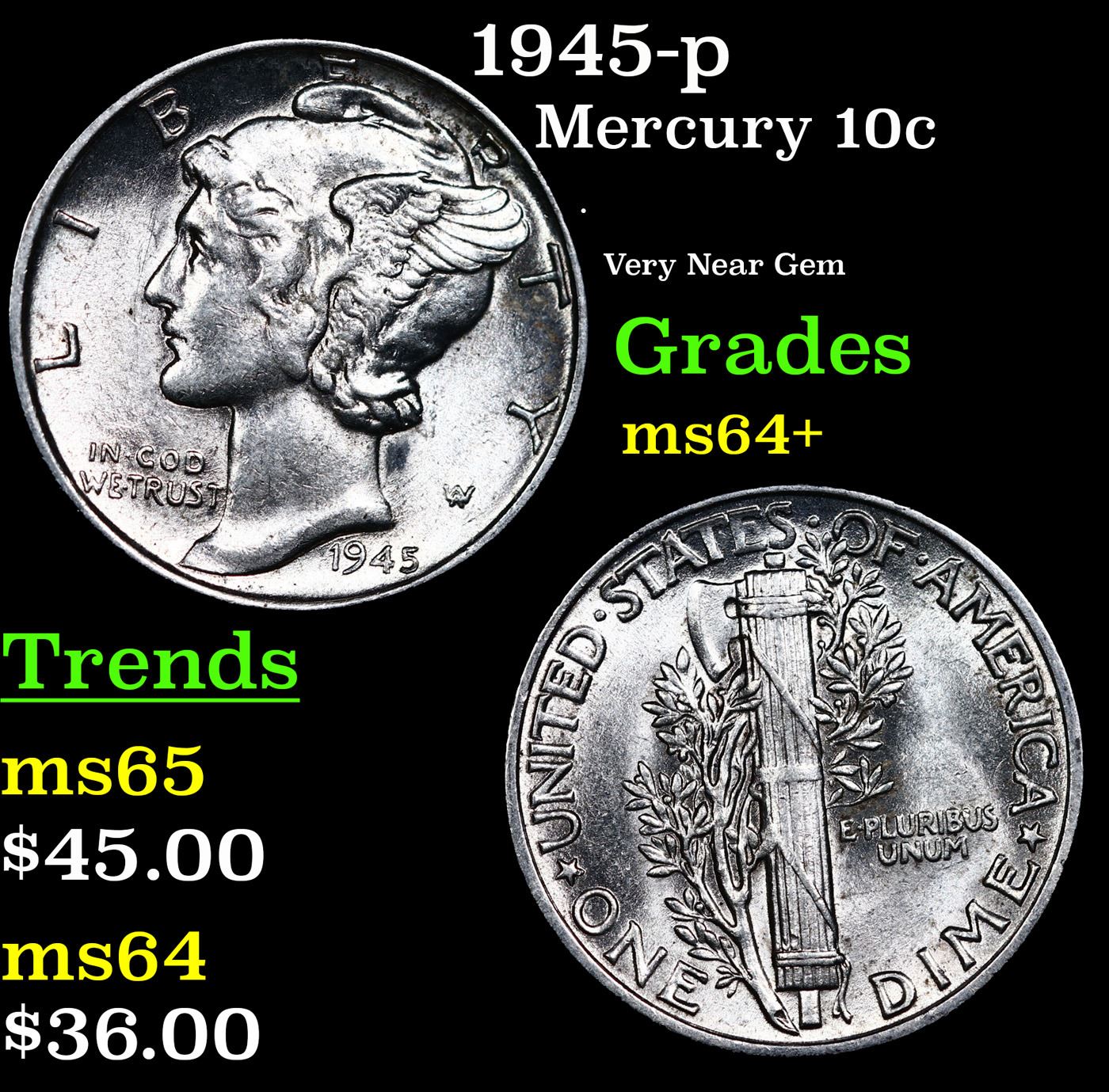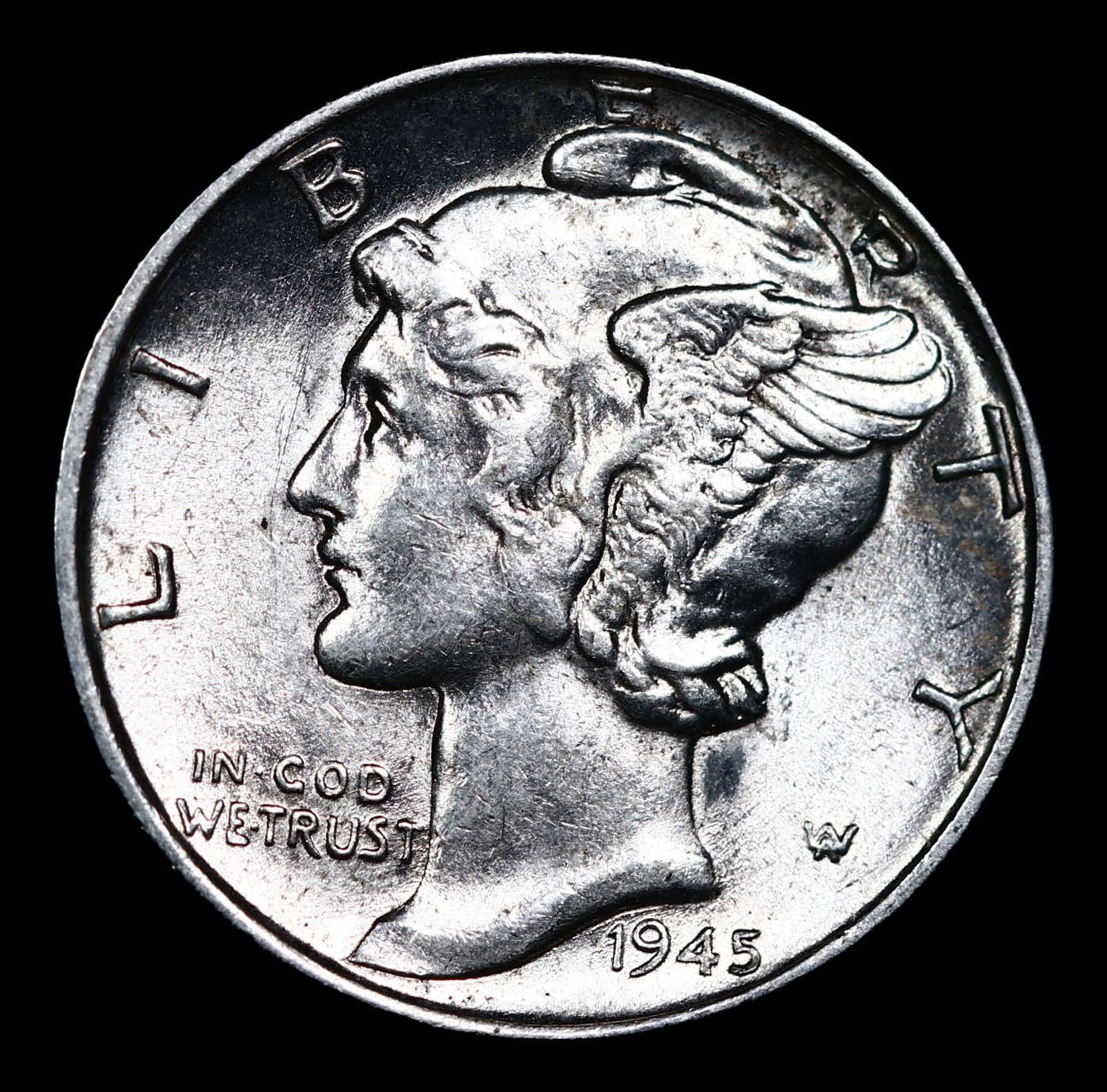 1945-p Mercury Dime 10c Grades Choice+ Unc.