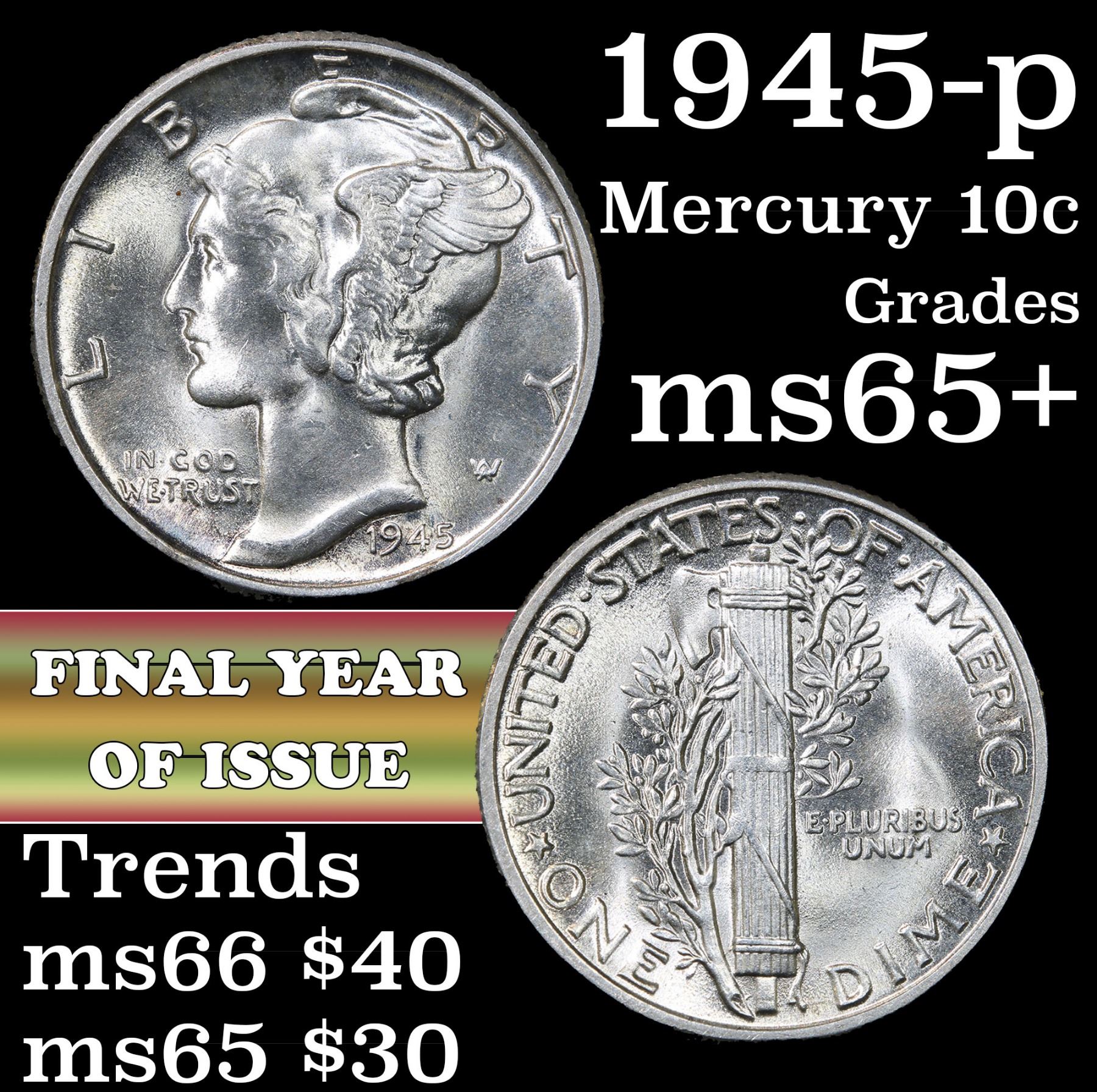 1945-p Mercury Dime 10c Grades GEM+ Unc.