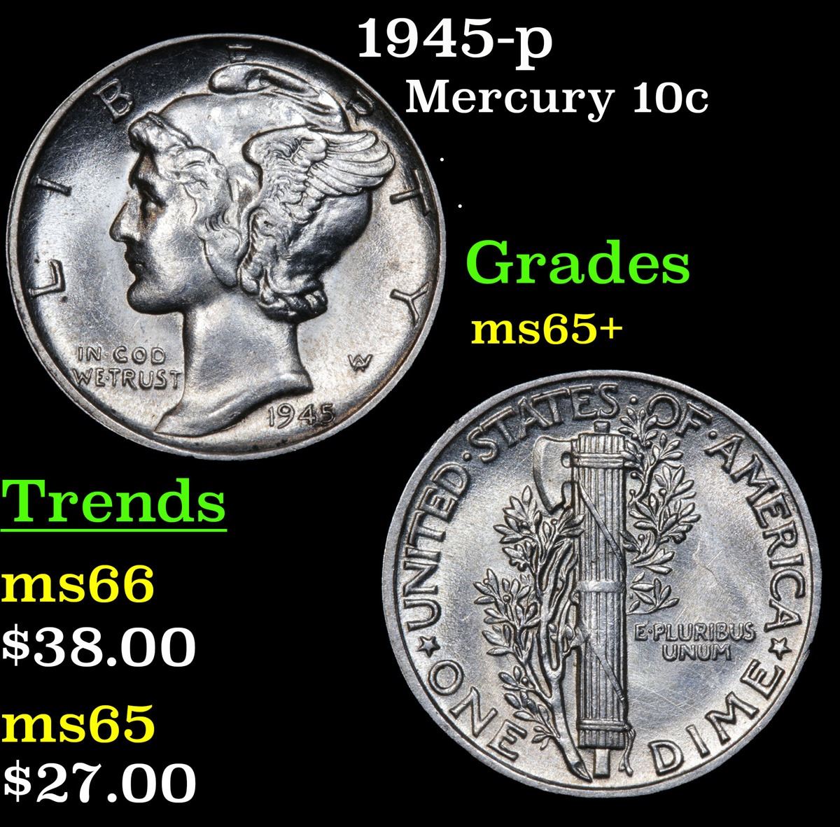 1945-p . . Mercury Dime 10c Grades GEM+ Unc.