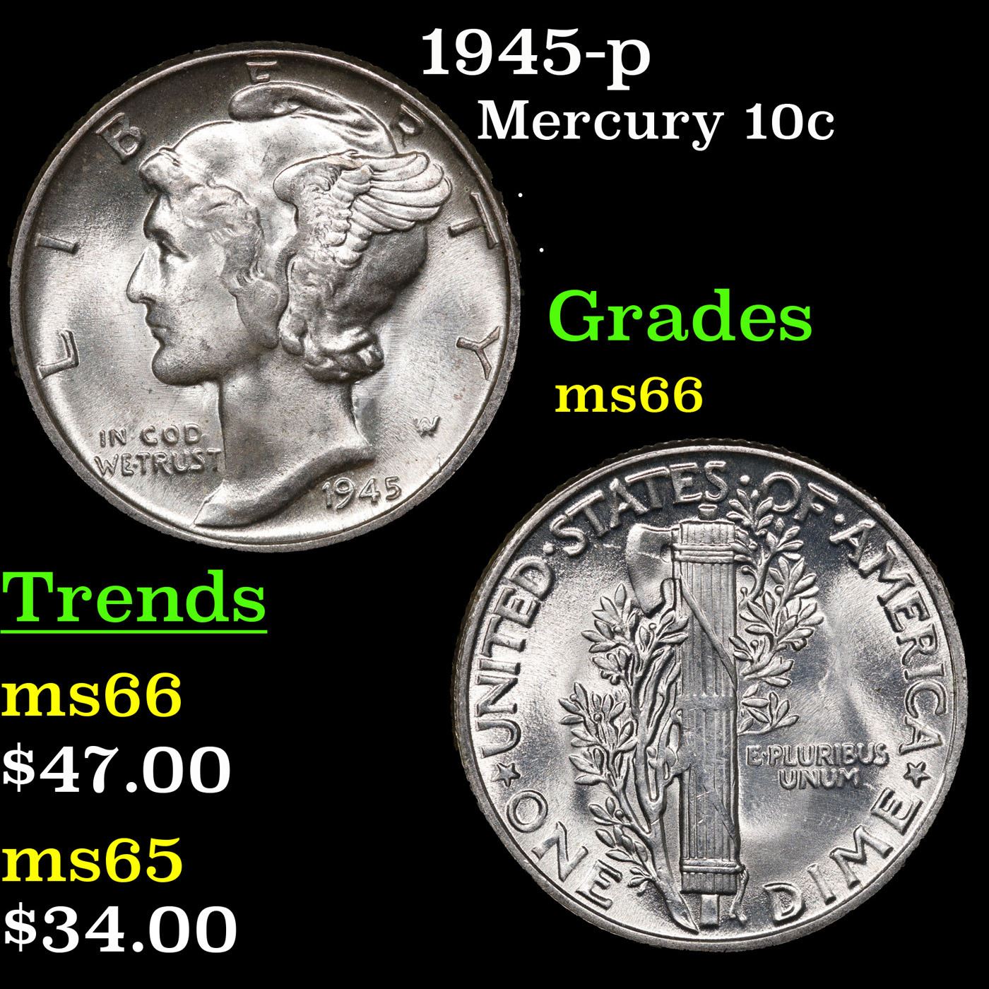 1945-p Mercury Dime 10c Grades GEM+ Unc.